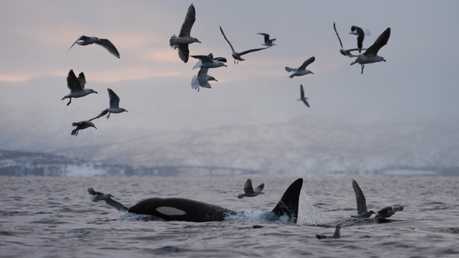 Lika snabbt som det hade börjat, lika snabbt tog det slut: späckhuggarna simmade iväg och letade efter mer sill. De enda spåren som lämnades kvar var bitar av silltarmar som flöt på den nu lugna ytan. En bister påminnelse om det mörker som lurar under ytan.