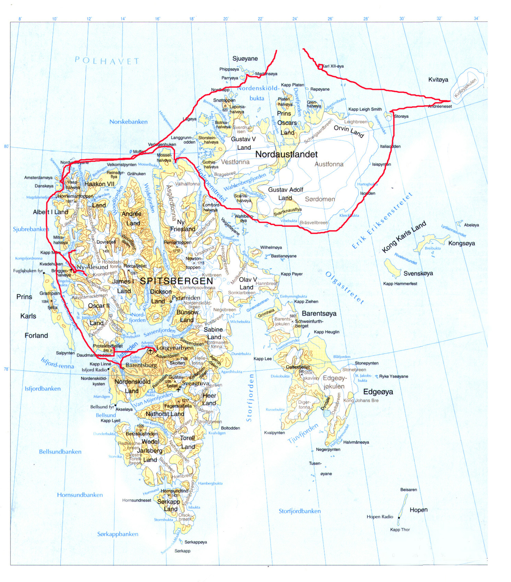 Under en stor del av natten seglade vi längs Austfonnas vita mur längs havet. Tidigt var vi ute för att beskåda glaciärfronten vid Bråsvellen, där under sommaren smältvattenfall kastar sig ut. Solen var framme, lätta dimbankar dansade, havet var fläckat av kalvad, glimmande is: i sin renhet lika jungfruligt vit som ismåsen som flög förbi. En sillval blåste och klöv det blå havet. Samarbetsvilligt bröt den vattenytan och korsade vår kurs, nära! En känsla av lättnad: det mäktiga landet var synligt, dimman borta!