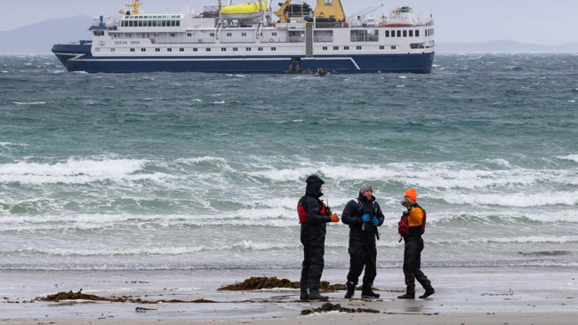 Redan på vägen ut genom Beaglekanalen var äventyret i full gång! Ett stort antal sjöfåglar av olika slag följde Ocean Nova ut mot Falklandsöarna, och redan efter första dagen till sjöss kunde gruppens fågelskådare bocka av både kungspingvin, svartbrynad albatross, sydlig jättestormfågel, brokpetrell m.fl på sina artlistor.