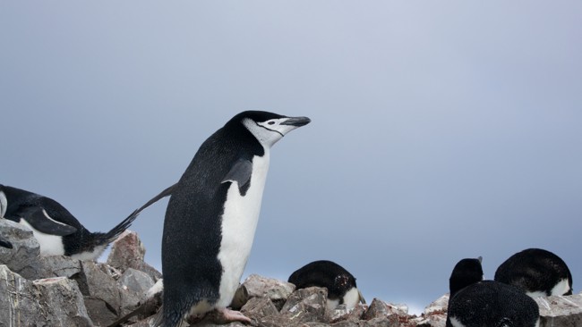 En nyfiken art som häckar både i Antarktis och på de subantarktiska öarna. Deras distinkta röda näbb är en av de få färgklickar du hittar på Antarktis.