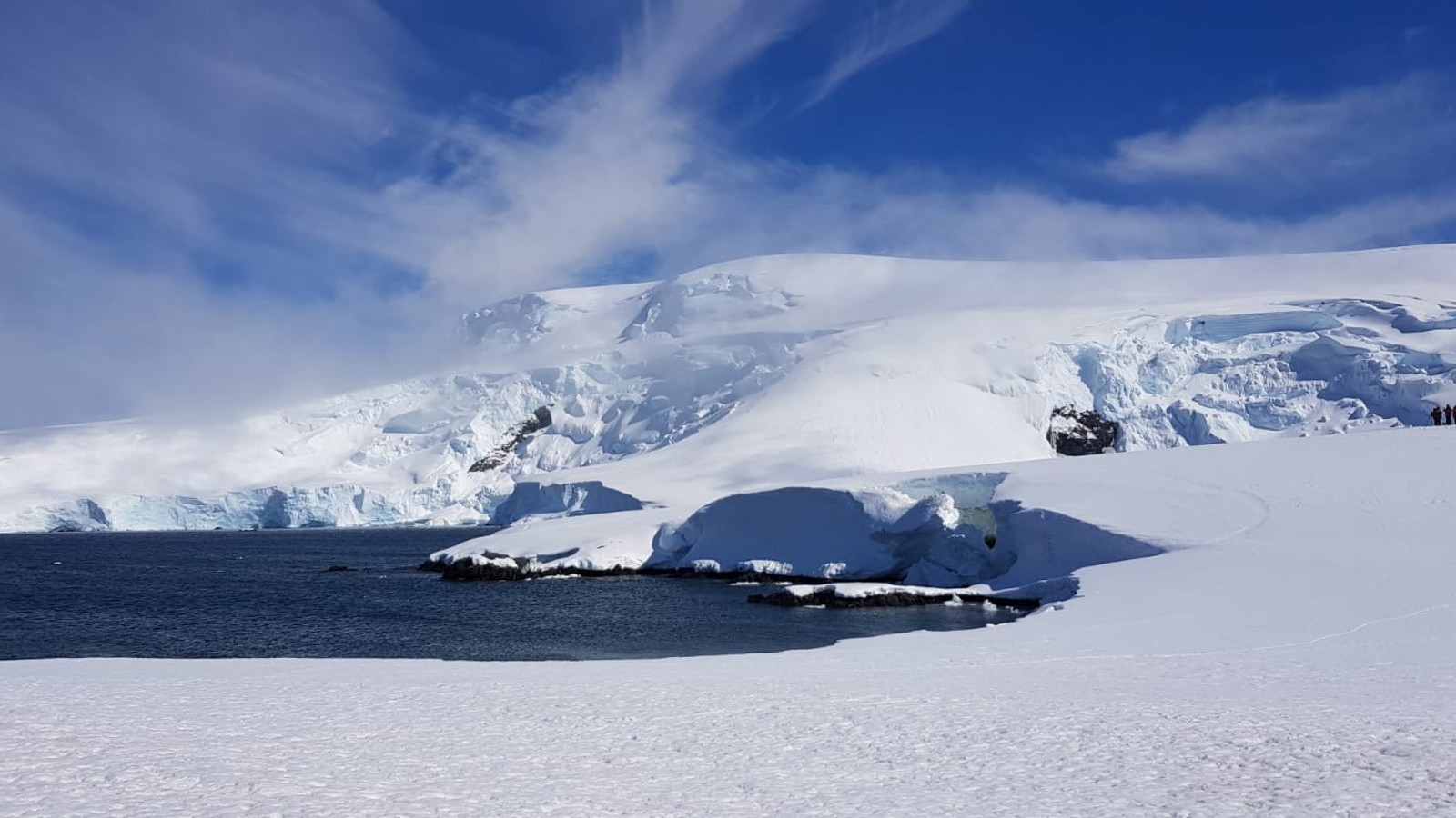 Blåa isberg som flyter förbi, solen som skiner, utsikten över enorma och snötäckta bergskedjor längs med fartyget. Det råder ingen tvekan om vart våra resenärer befinner sig - äntligen hade de nått Antarktis!