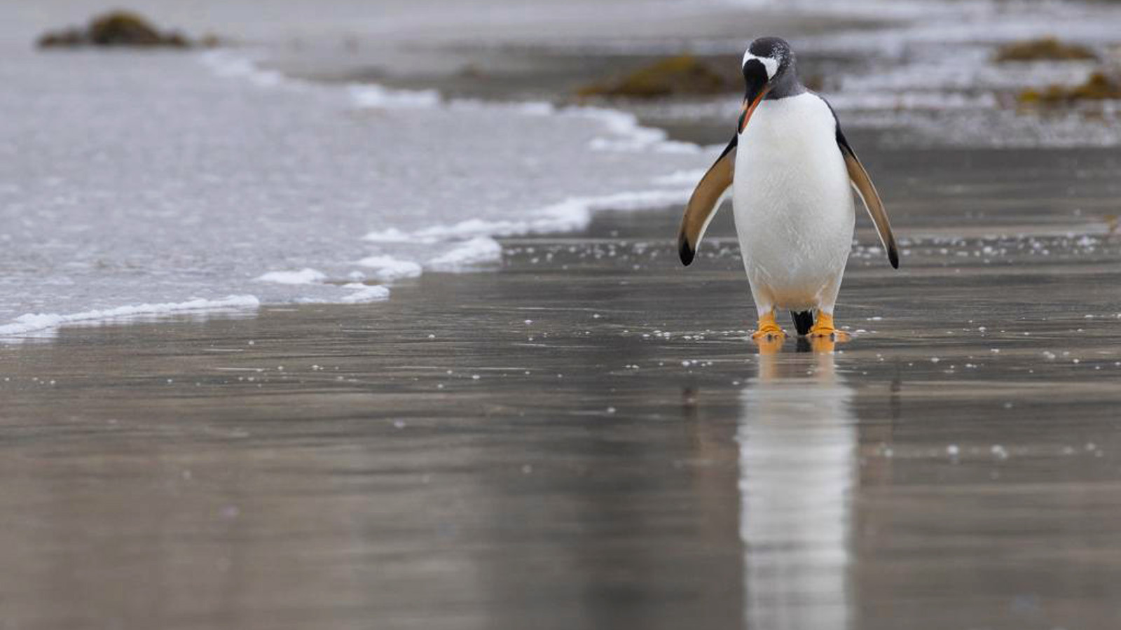 Lite blött blev det, men det var snabbt glömt när vi steg iland på den långa vita sandstranden och möttes redan vid vattenbrynet av gentoopingviner på väg både upp och ner i vattnet. Längre upp på stranden låg deras partners och ruvade uppe på sina små stenhögar till bon, tålmodigt väntande på vaktavlösningen.