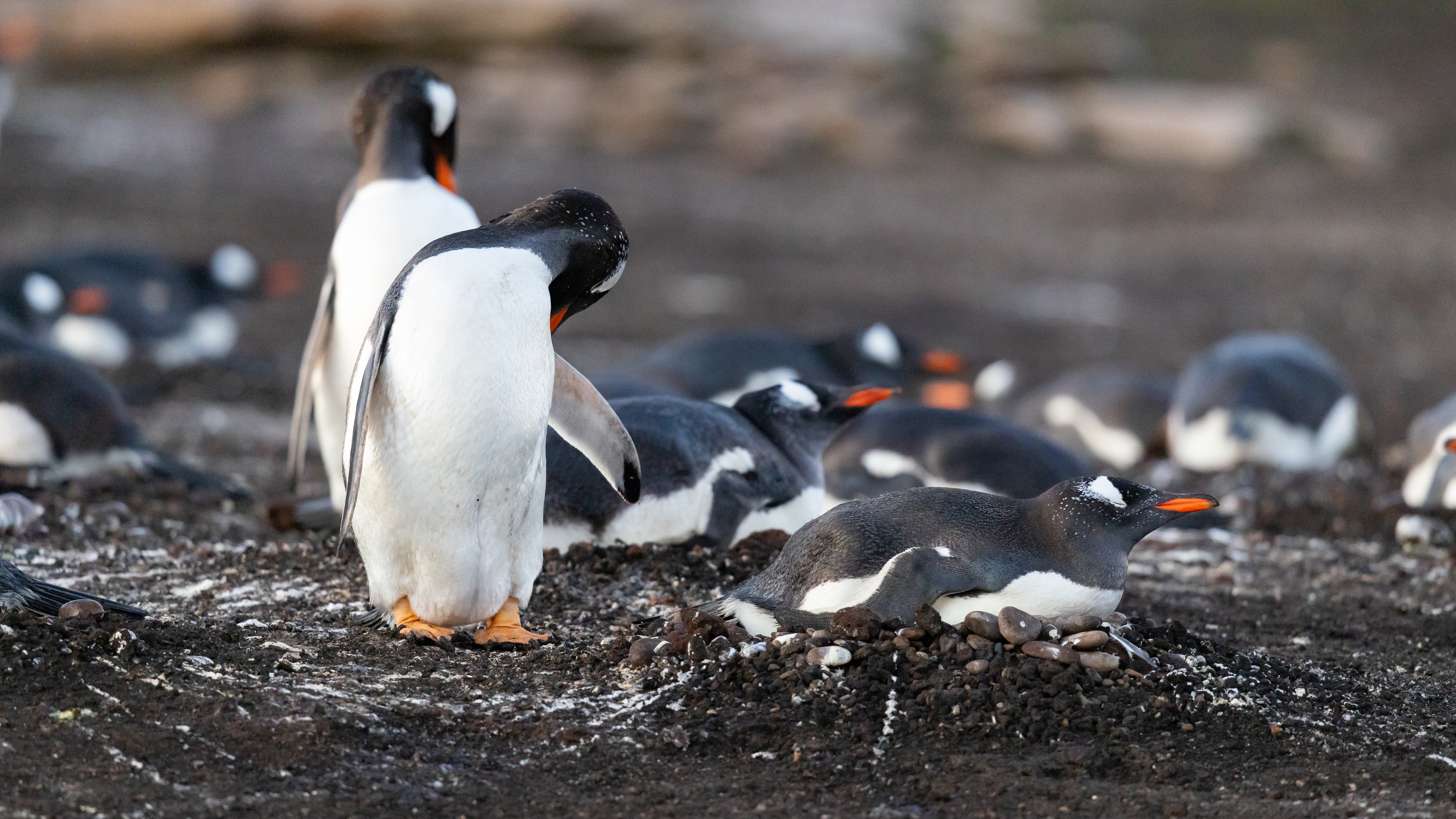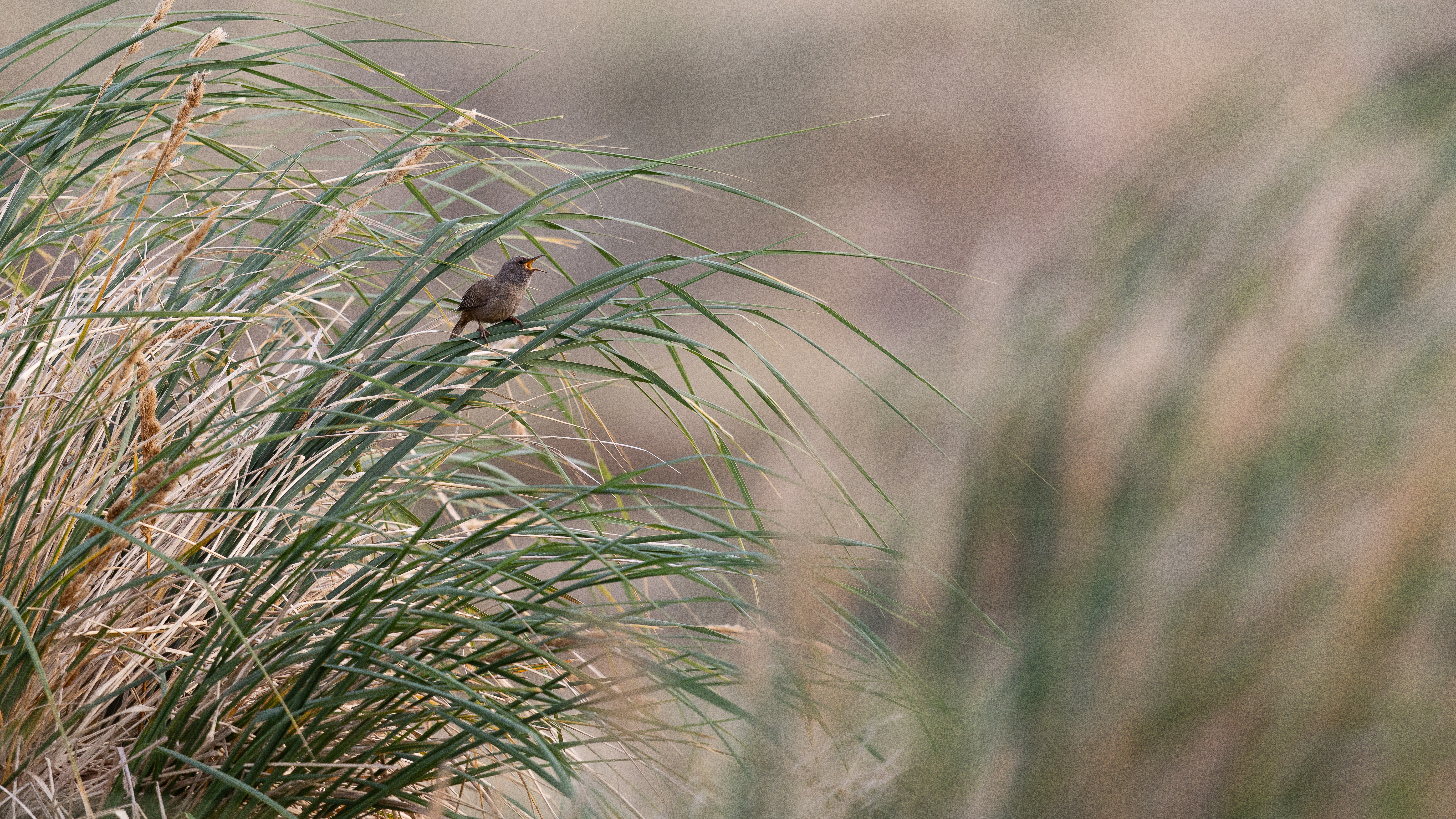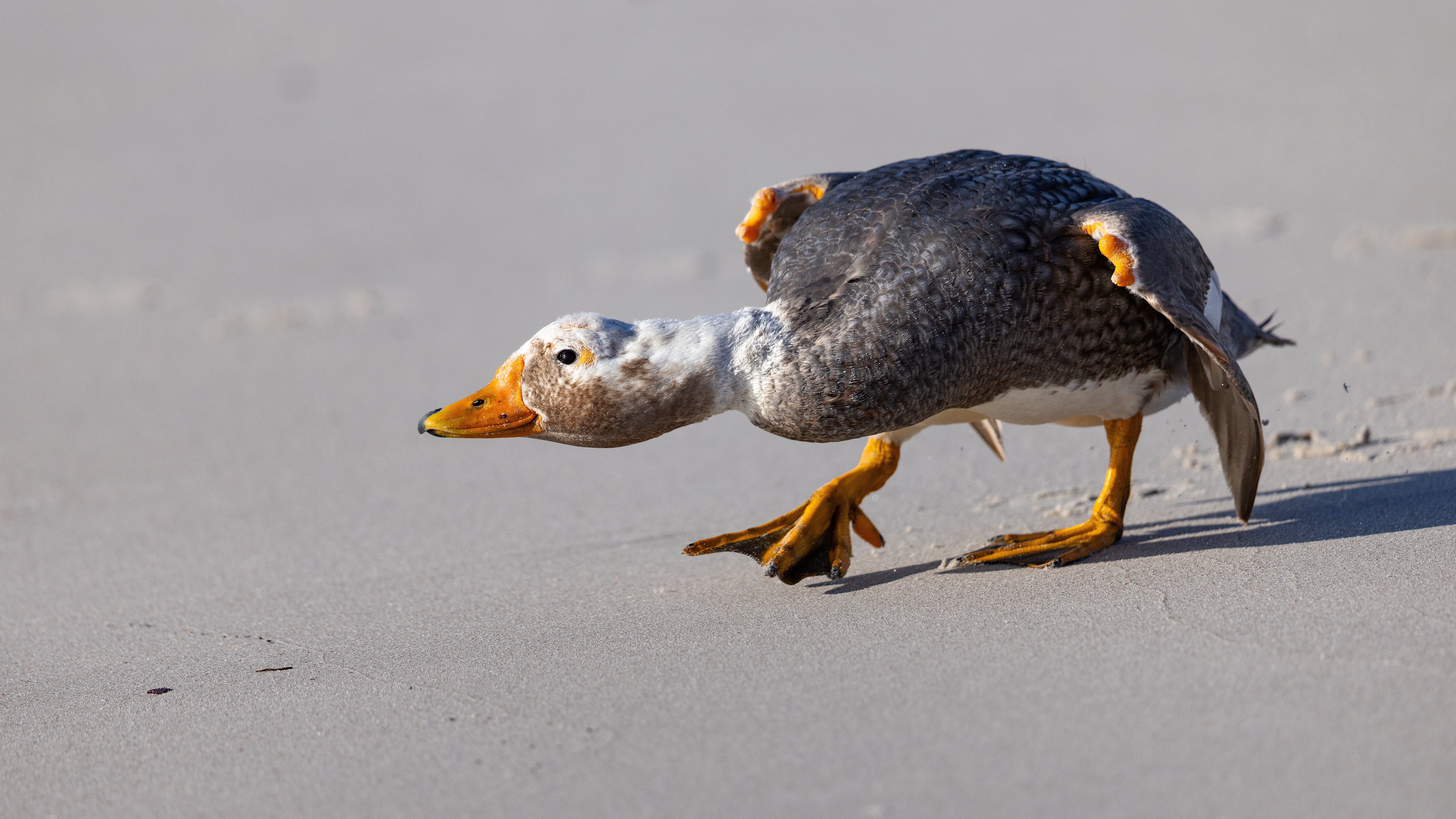 Vi landade på stranden, där vi redan kunde bevittna Falklandsöarnas rika fågelliv, från gentoopingviner som häckade på stranden till höglandsgäss som rörde sig genom tussockgräset och magellanpingviner som gömde sig i sina hålor. Vi tog oss upp från stranden till de gröna slätterna som täcker öns spets. För varje steg avslöjade en ny vinkel det rika fågellivet, och när solen bröt igenom horisonten gjorde det mjuka morgonljuset varje foto unikt.