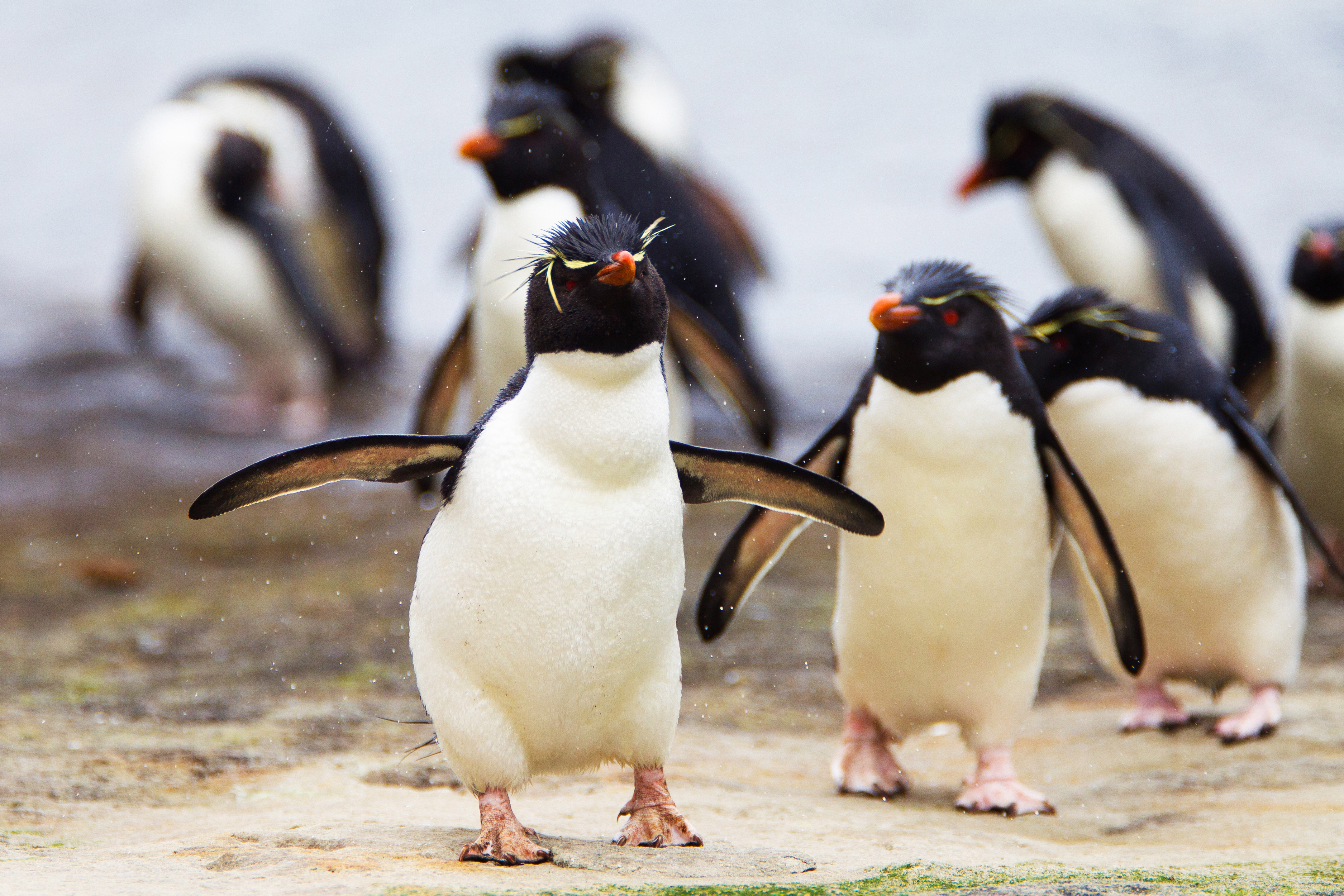 På landstigningsplatserna välkomnades av en pingvinkommitté - Magellanpingvinerna som häckade i jordhålor likt kaniner, åsnepingviner som spatserade på stränderna och kaxiga klipphopparpingviner som hoppade framför benen på en när man gick på gångarna bland det meterhöga tussockgräset.
