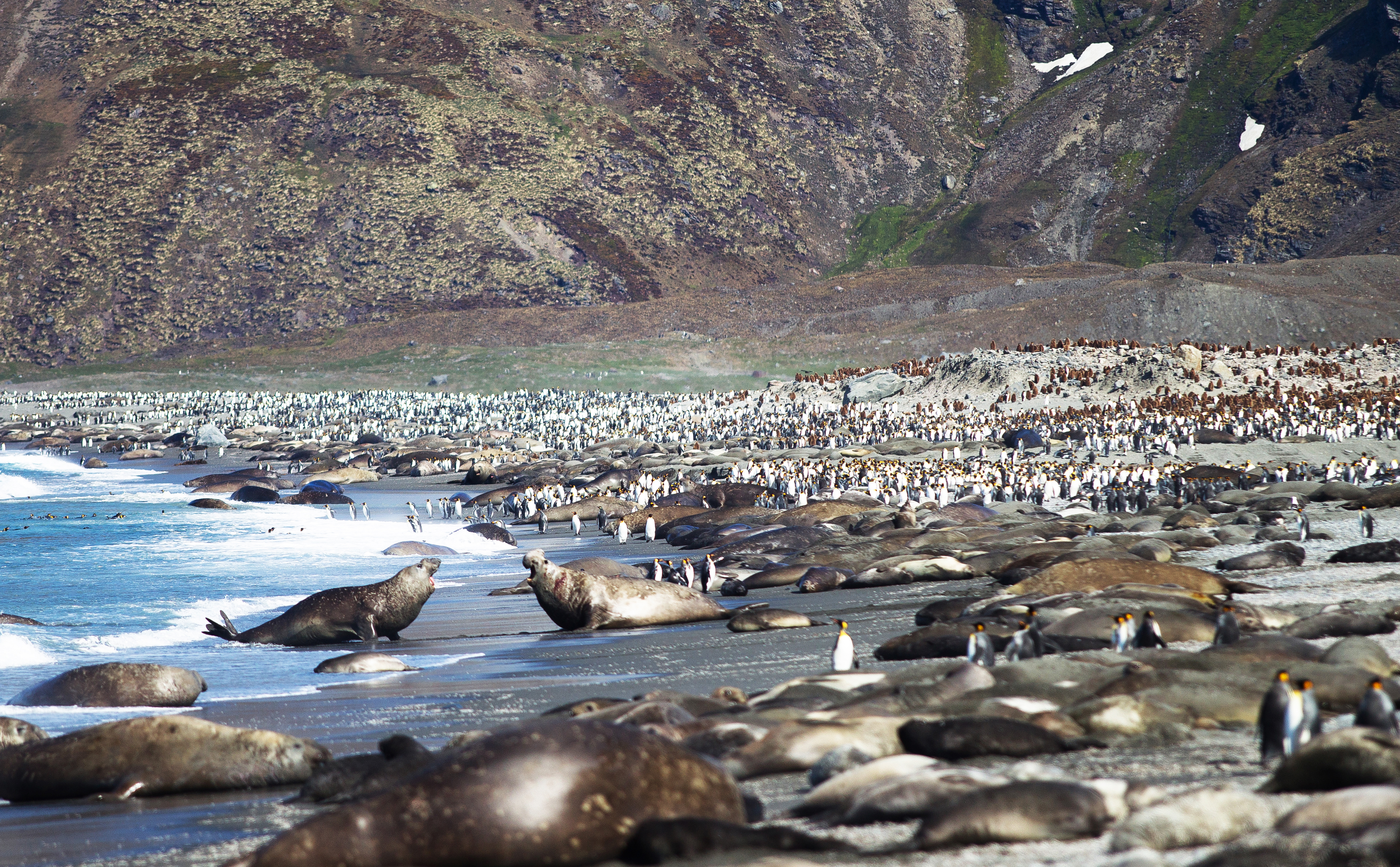 Nu var siktet inställt på Sydgeorgien och det pirrade lite extra i magen. David Attenboroughs naturfilmer som utspelat sig på denna utpost fanns på näthinnan och förväntningarna var skyhöga inför landstigningarna på Sydgeorgien. När dagen väl var kommen och vi klev iland och möttes av ljudet av tusentals kungspingviner som trumpetade och visslade samt från de gigantiska elefantsälarna som slogs om sina harem fick man nypa sig i armen. Vyn var ännu mer storslagen och svår att ta in, man kände sig liten i det väldiga havet av pingviner och sälar. Precis som Sir Attenborough fick man gå omvägar och nästan kliva över djurlivet som nästintill inte noterade vår närvaro.