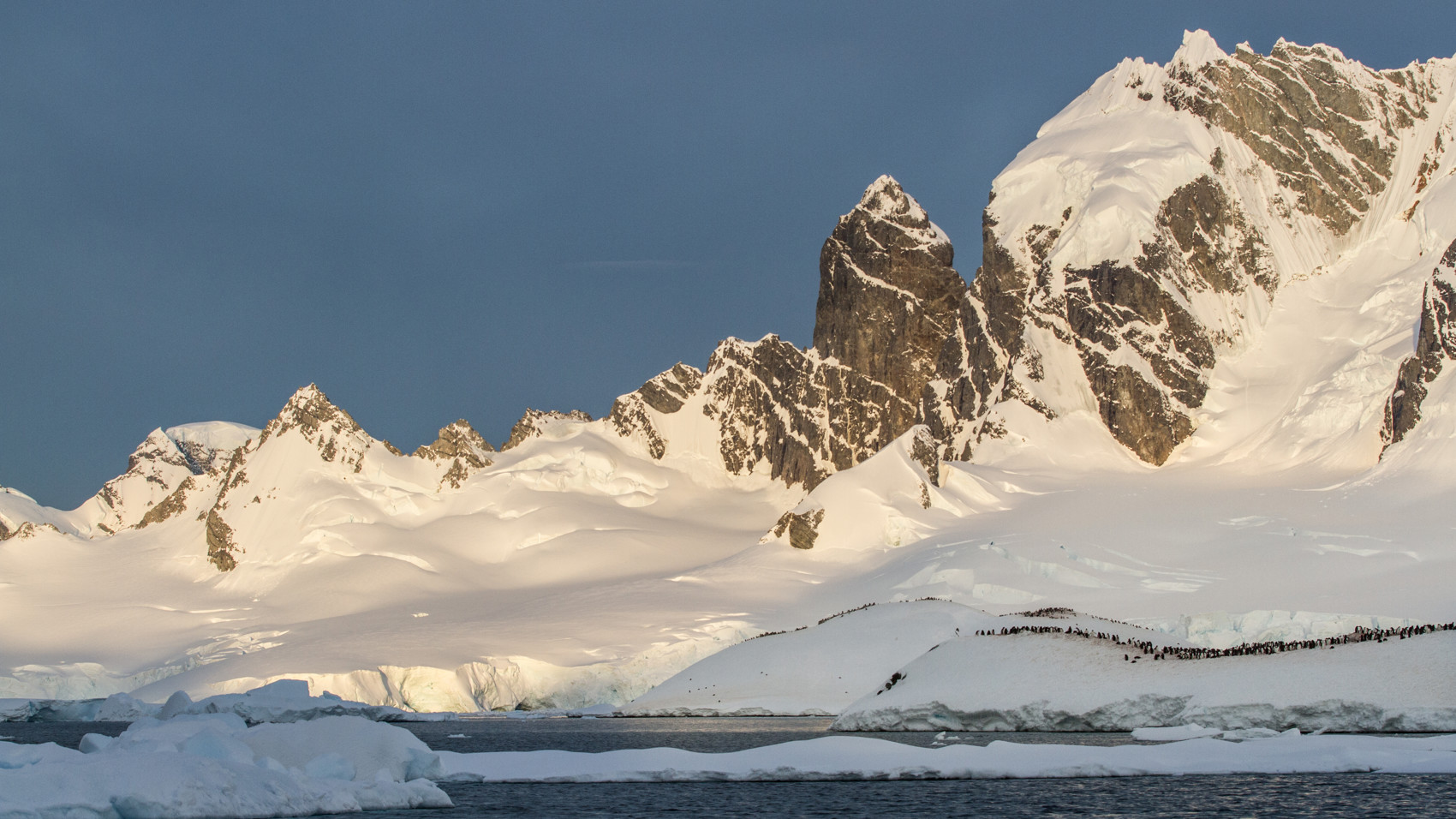 Planer är till för att ändras: flexibilitet! Vinden försåg oss med ytterligare en förbättring av programmet, en sydligare landning, bland Cuvervilles gentoos efter middagen. Finare ljus över landskapet kan man inte önska: fastlandet gulnade mot guldrött, havet antog en mjukt gul färg. Vilken kväll pingvinerna fick – liksom vi!