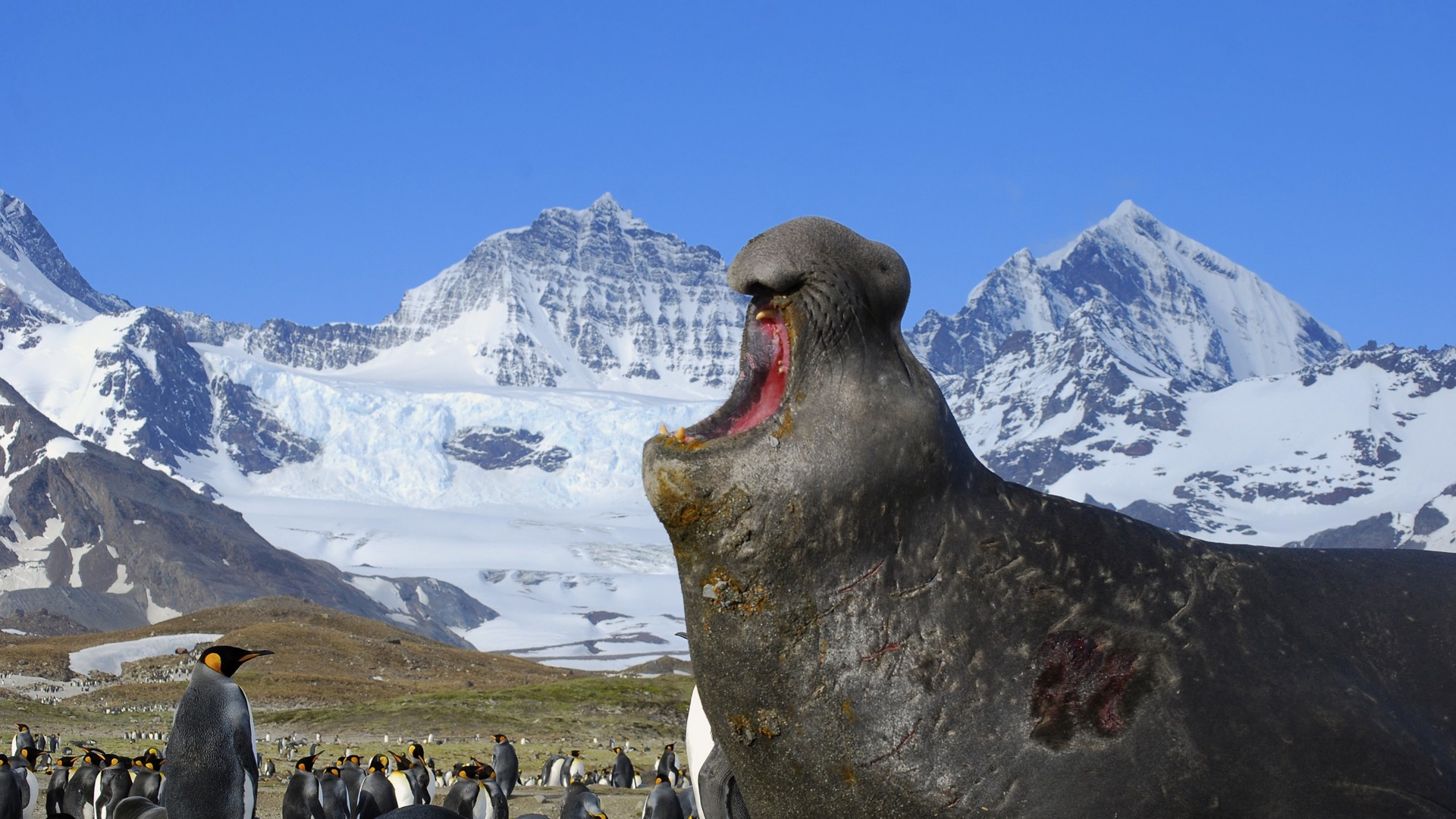 Vid stranden hackar sig jättestormfåglar in i en avliden elefantsäl. De slåss och bråkar vid den väldiga buffén, sprider ut sina tvåmeters vingspann och jagar varandra. De framfusigaste, med blodiga huvuden långt inne i kadavret, är snart mätta och andra kan ta över. Inom några dagar kommer tvåtons-sälen att var ett skelett: återanvändning och renhållning är naturens motto.