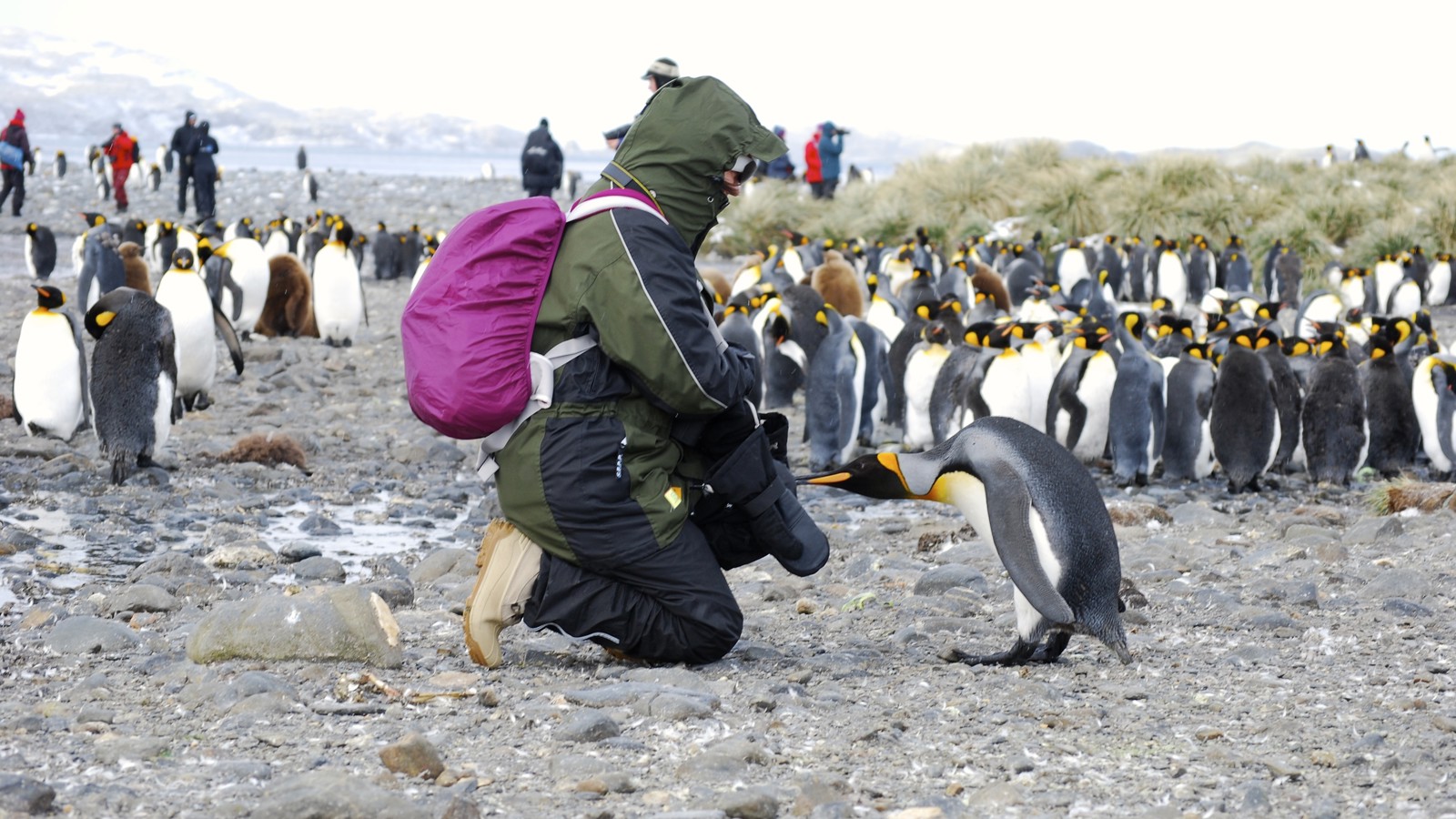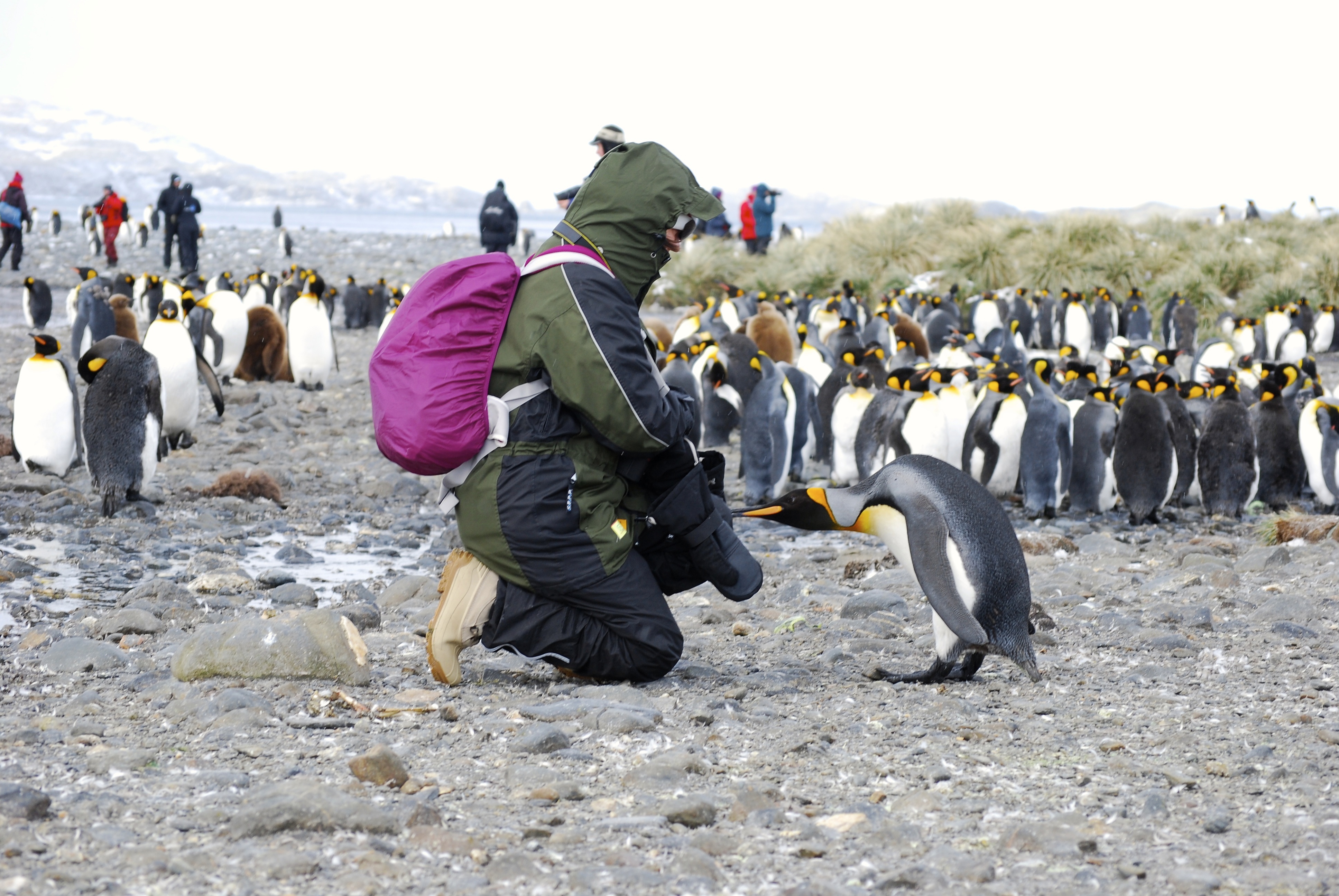Vi har flera timmar, avbrutna av en frukost ombord för den som vill, att insupa ett av jordens mest magnifika vildmarksparadis. Inneslutna i stötarna av elefantsälarnas bröl (de 3-4 ton tunga hannarna) och bjäbbande skall (de nyligen födda, svartpälsade ungarna), allt mot en ljudmatta av kungspingvinernas trumpetande (de vuxna) och späda visslingar (de dunklädda trollungarna) rör vi oss sakta igenom ett överväldigande rad beteende som för invånarna bara är vardagsbestyr. Här diar stilla sälungarna, här rasar bataljer mellan haremskungarna i moln av damm, här bedrivs älskog för att föra sälbeståndet vidare. Hos kungspingvinerna, de färggrannaste av alla de frackklädda, matas ungarna, – och samtidigt pågår uppvaktning – och ruggning av fjäderdräkten hos dem som avslutat häckningen!