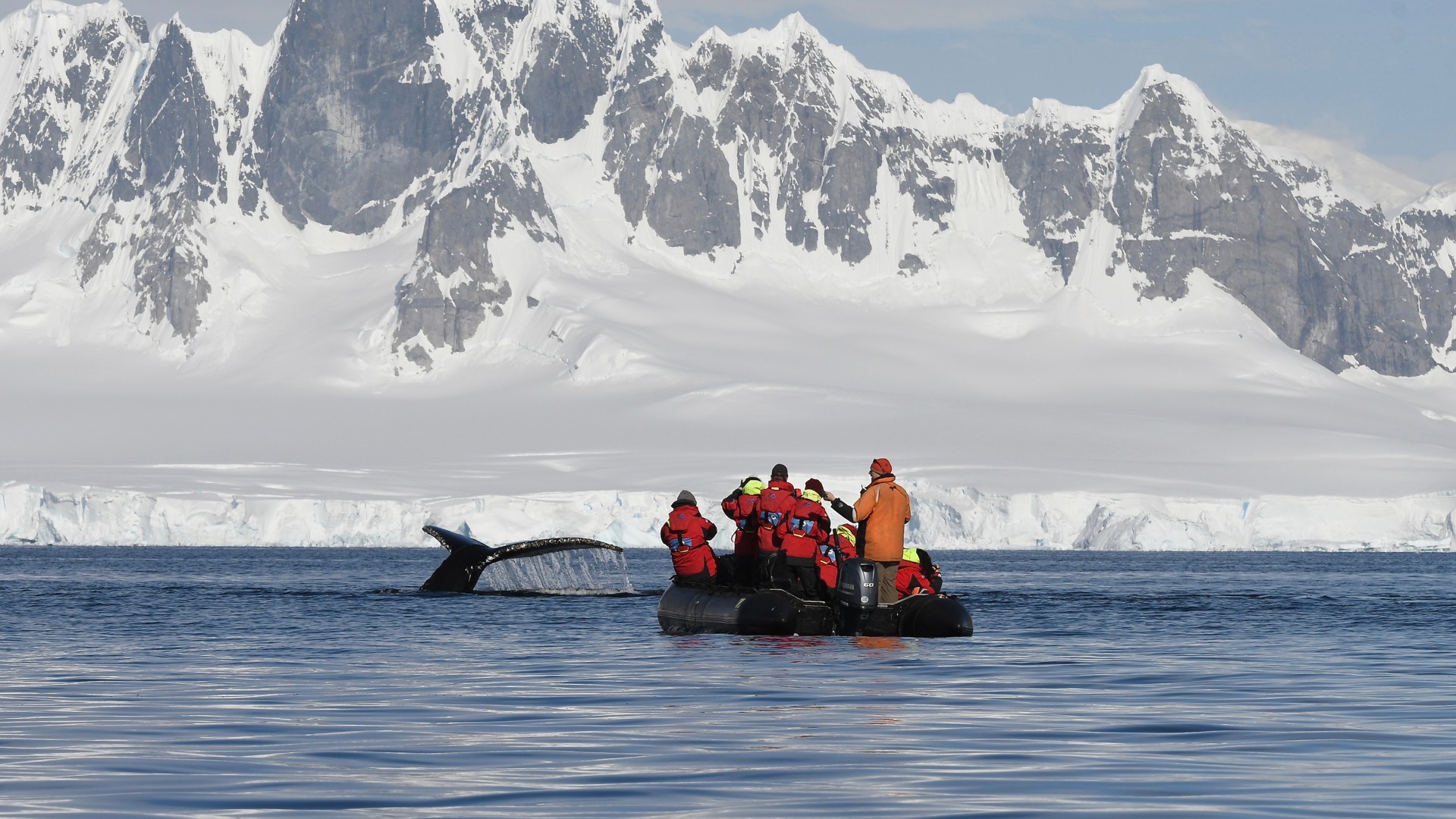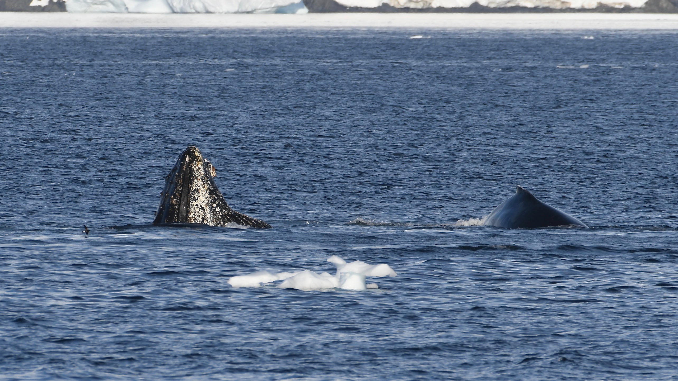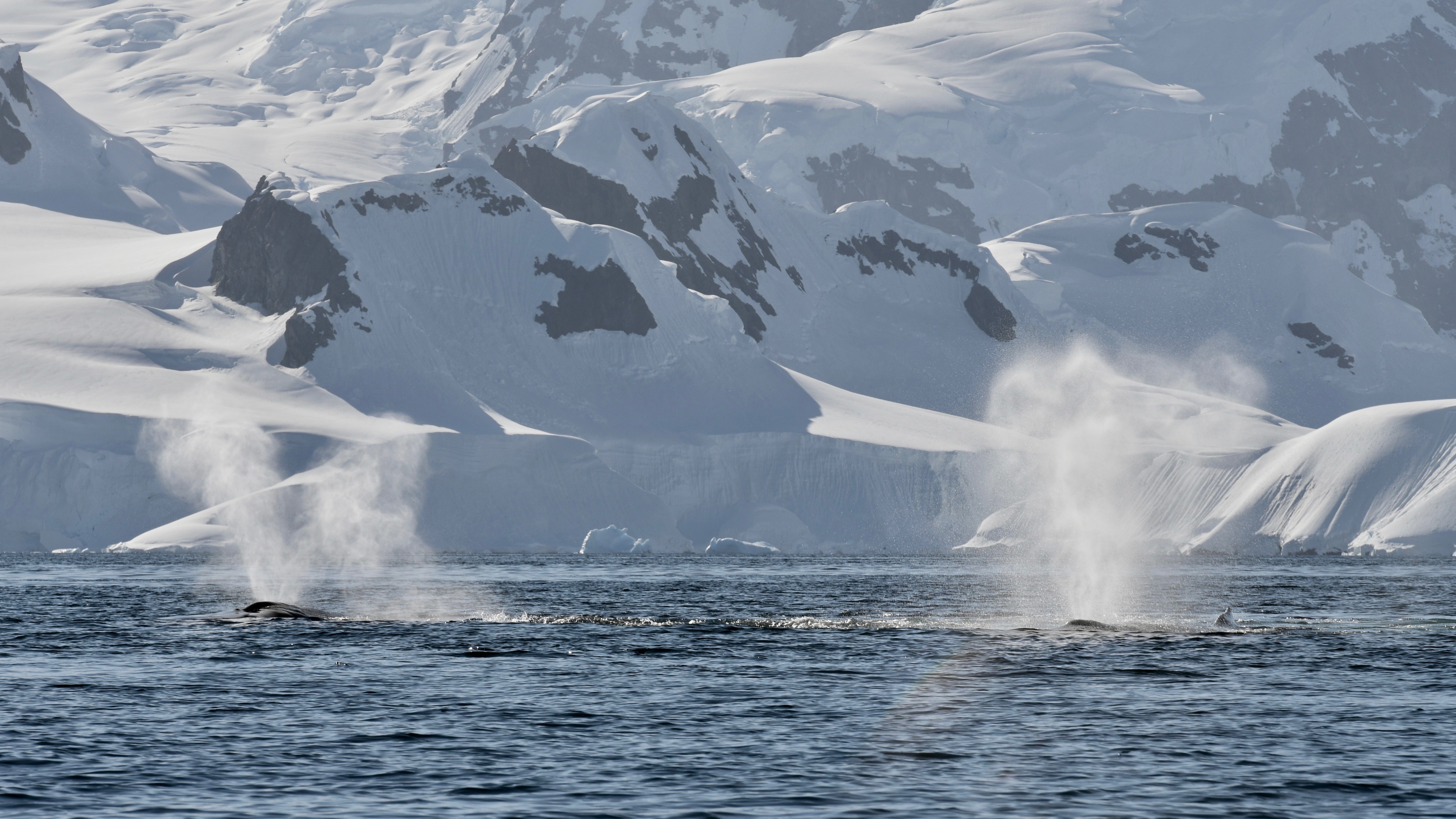 Vi stängde av motorn på vår Zodiac för att inte störa valarna och för att bara kunna njuta i fulla drag. Medan solen värmde från den klarblå himmelen, visade en del knölvalar sina stjärtfenor när de dök, andra sina sidfenor, samtidigt som andra kom upp till ytan med sina mäktiga blås för att hämta ny luft. Det var ibland svårt att veta vilket håll vi skulle titta åt. En sådan fantastisk upplevelse vi fick, allt så vackert inramat med de antarktiska snö- och glaciärklädda bergen i bakgrunden. Ett sånt äventyr!
