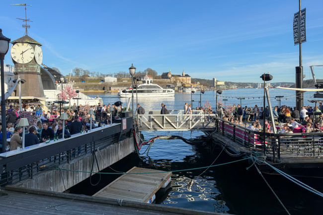 Dynamiska Aker Brygge utgör med sin mix av bostäder, shopping, restauranger och barer en del av Oslos hamnpromenad. Slå dig ner på någon mysig servering eller bara njut av det vackra fjordlandskapet.