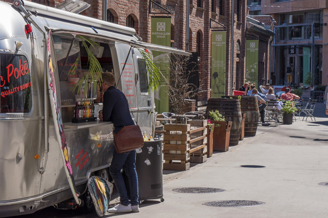I Mathallen Oslo, i stadsdelen Grünerløkka, hittar du spännande produkter från såväl norska som internationella producenter. Med mer än 30 specialbutiker, caféer och matställen så bjuds det på en stor variation av olika maträtter och drycker. Allt av hög kvalitet. Flera av butikerna och matställena har egna serveringar, men det går också bra att köpa mat från flera olika ställen och avnjuta den mitt i hallen, på torget.
