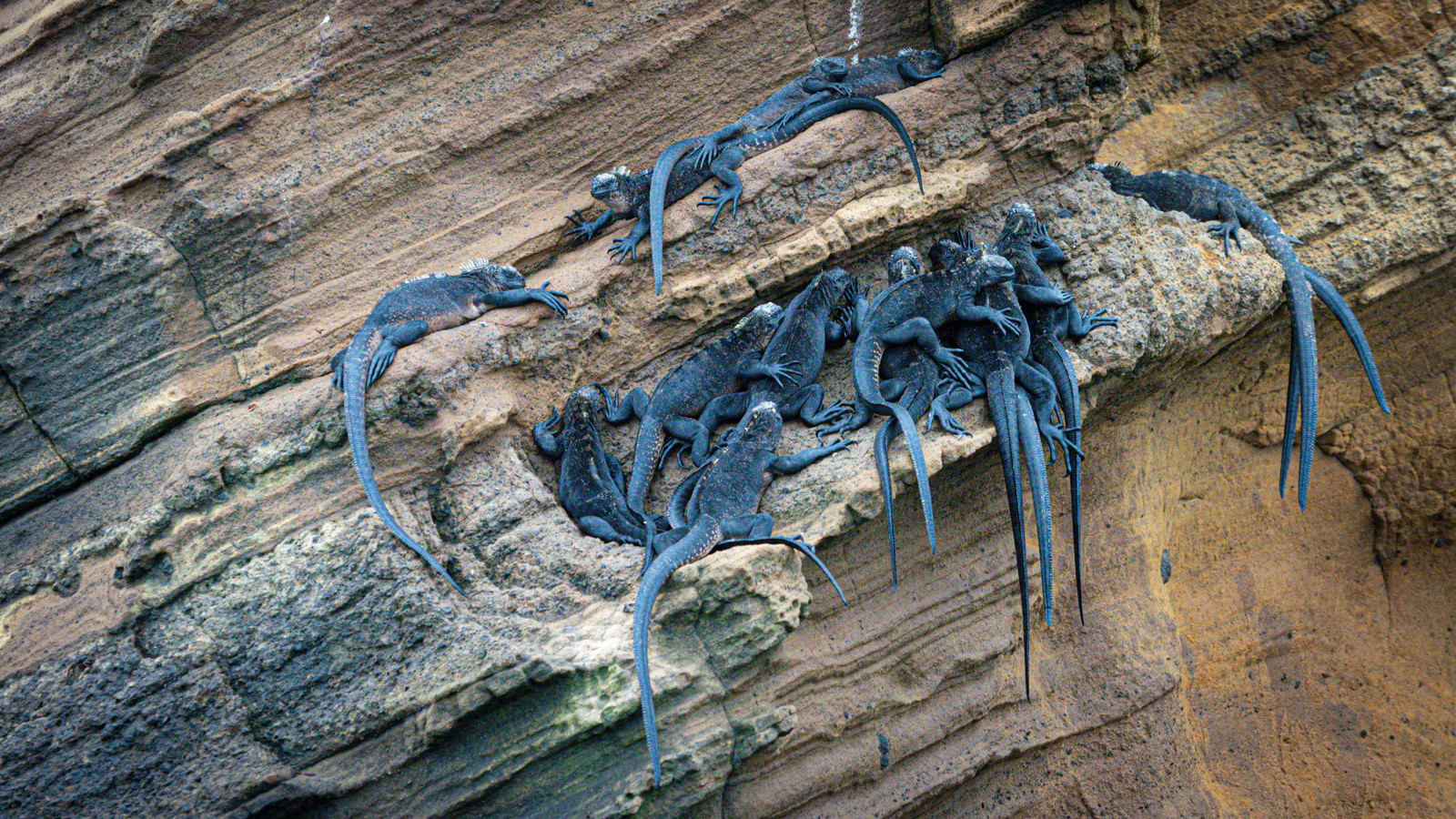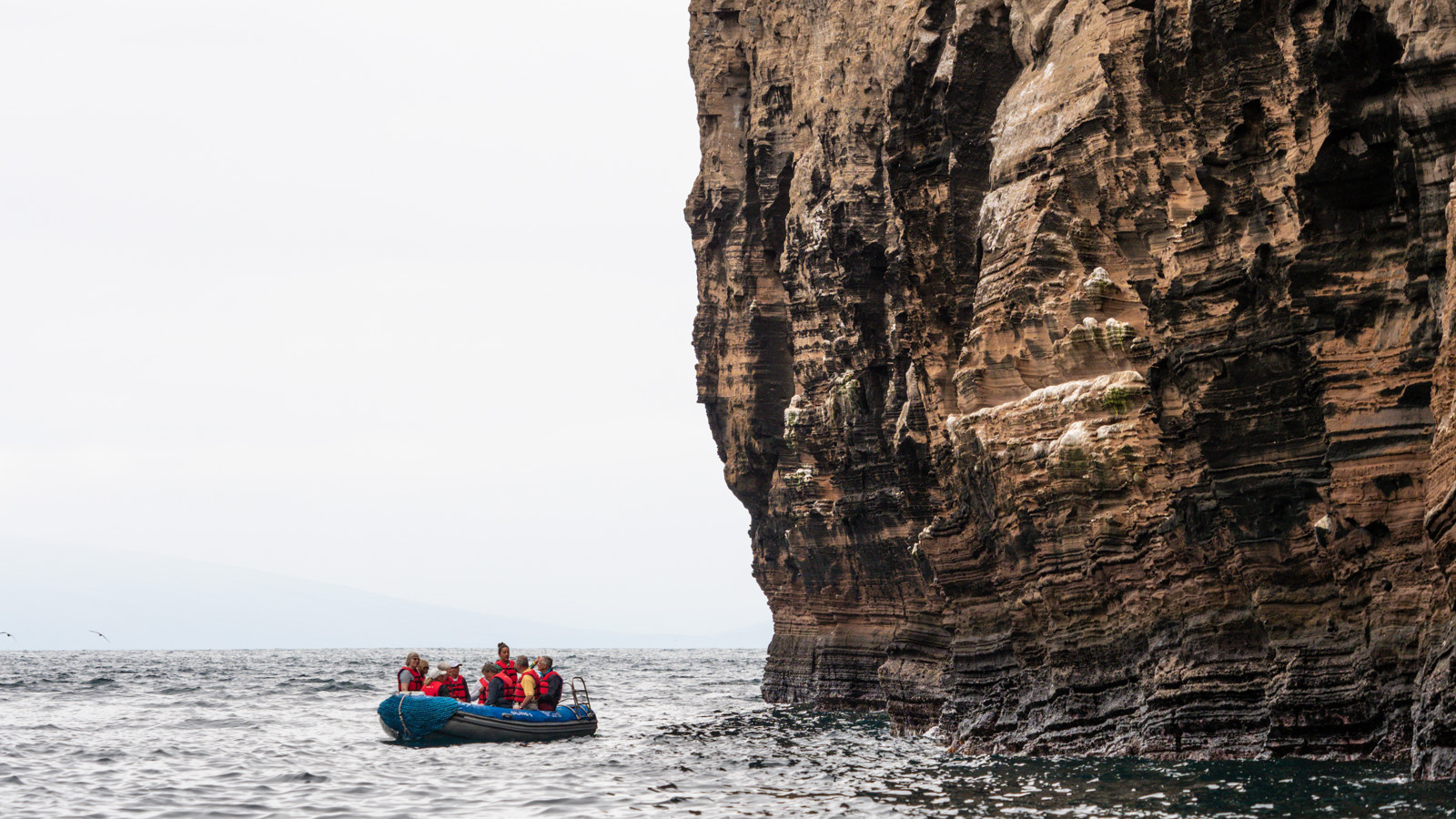 Att vakna upp vid ön Isabelas kust får en att tro man har färdats tillbaka till urtiden. Ingenting liknar detta landskap, med branta vulkaniska väggar som störtar rätt ned i Stilla Havet, ett hav som kokar av liv. Vi började dagen med att titta närmare på den dramatiska geologin med hjälp av våra gummibåtar och upptäckte att många djur har funnit sitt hem här, trots otillgängligheten. Vi häpnade över hur högt och brant de endemiska havsleguanerna klättrat för att övernatta på nästan helt vertikala väggar och längre ned bland klipporna mötte vi den för Galapagos unika skarven - den enda skarv som inte kan flyga.