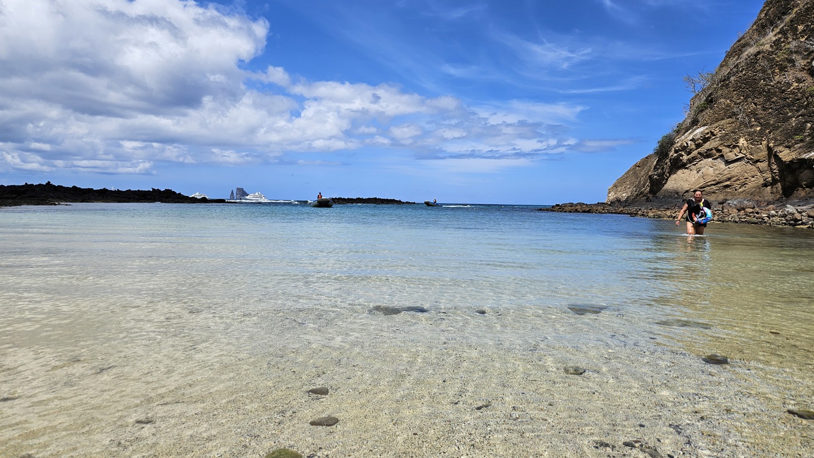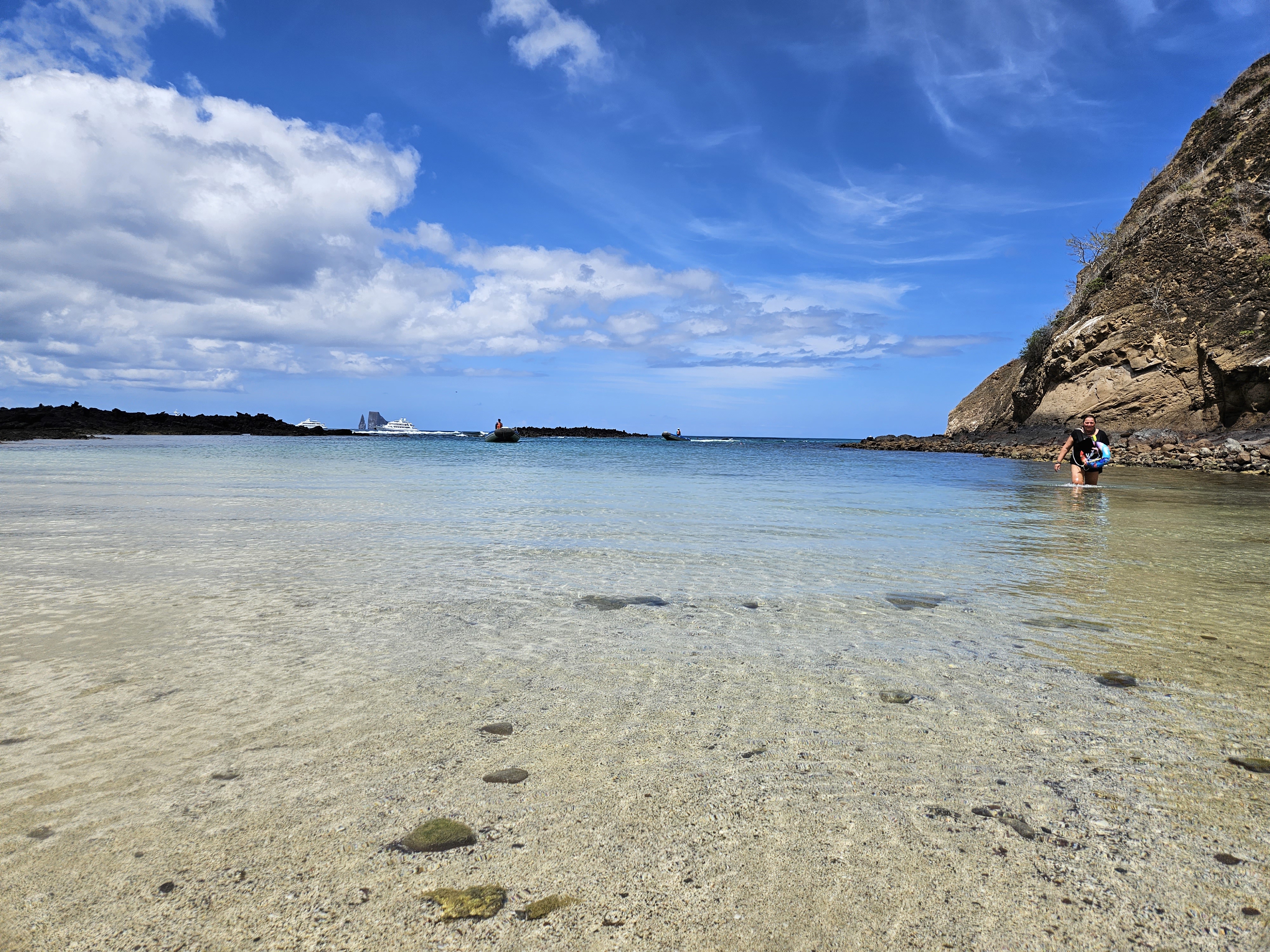 Under morgonen går vi i land vid Punta Cormoran där vi lyckas se flamingos i en saltsjö. Efter lunch snorklar vi runt samma ö innan vi på eftermiddagen går i land för att posta brev i den lokala brevlådan och besöka en fascinerande grotta.