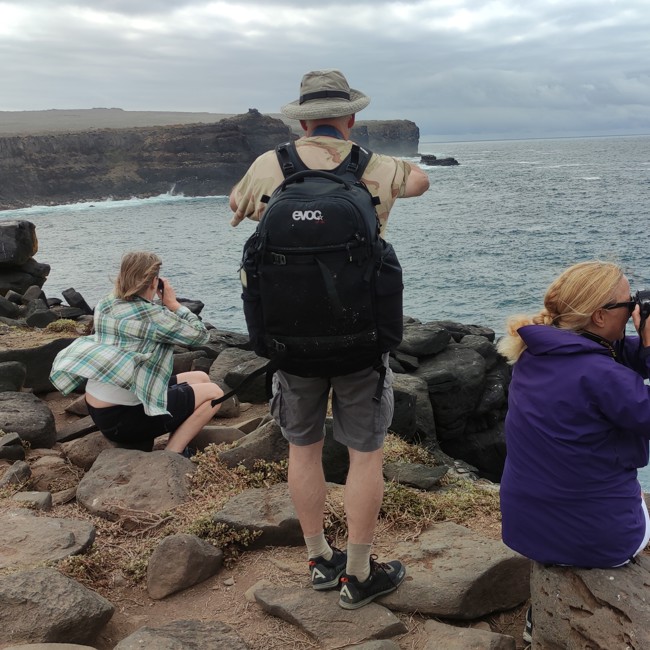 Dagen börjar strax innan soluppgång. Från däck kan vi skönja konturerna av Española Island någon sjömil österut. Med sina 22 000 par finns här nära 98% av världspopulationen av Galapagosalbatrossar, vilket är den främsta anledningen till att vi besöker ön. I soluppgång tar vi oss med två gummibåtar till stranden där vi går i land bland mängder av havsleguaner, Galapagossjölejon och Darwinfinkar.