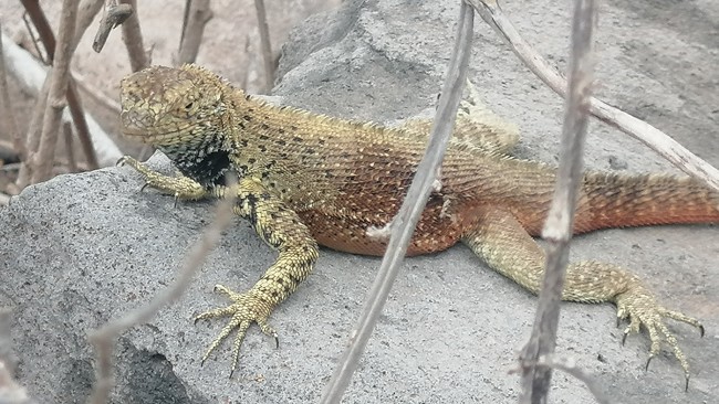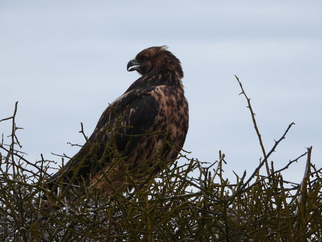 På ett sjömärke sitter två Galapagosvråkar och putsar sig i morgonsolen. Med tanke på mängden djur vi möter är det fascinerande hur lite de bryr sig om oss och det gäller att se var man sätter fötterna för att undvika en havsleguan eller ett sovande sjölejon.