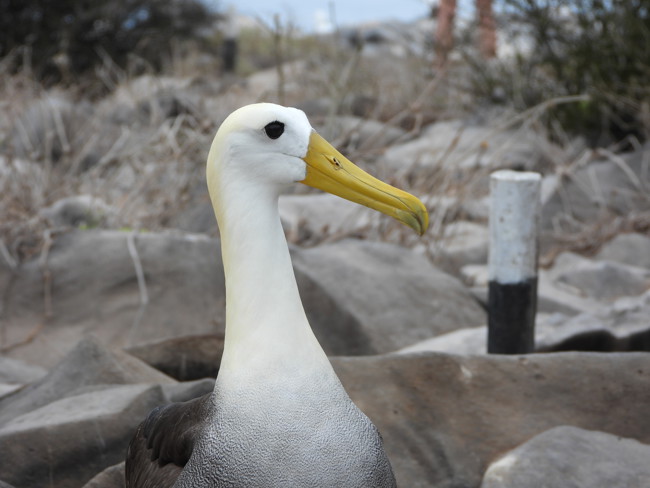 Vi går långsamt upp från stranden på en stenig stig kantad av nazcasulor och blåfotade sulor. Över oss seglar praktfregattfåglar tillsammans med svalstjärtade måsar. Plötsligt stöter vi på vår första albatross. Den står mitt på stigen och tycks spana in en annan albatross ett par meter bort. Med klumpiga steg närmar den sig den andra albatrossen och börjar försiktigt uppvakta den andra fågeln. Först lite avvaktande med att stampa med fötterna och höja och sänka huvudet, men när den andra fågel svarar blir rörelserna allt självsäkrare.