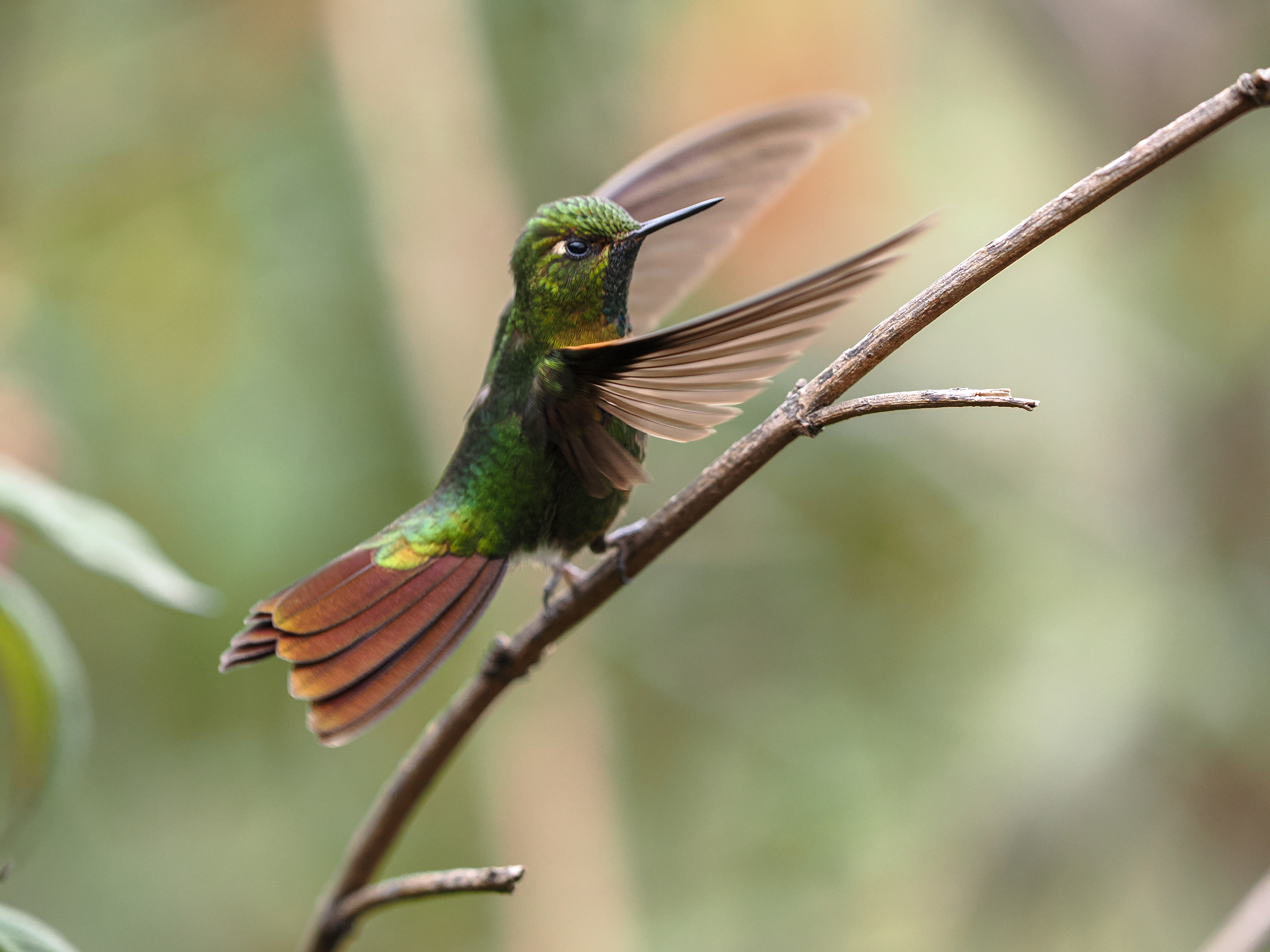 Vi står och tittar på kondorerna precis intill flera blomstrande buskar och snart märker vi att vi är omringade av kolibrier med. Nu är det svårt för samtliga att kunna bestämma sig vart dom ska titta, kondor eller kolibri. Båda är ju verkligen arter som är speciella.