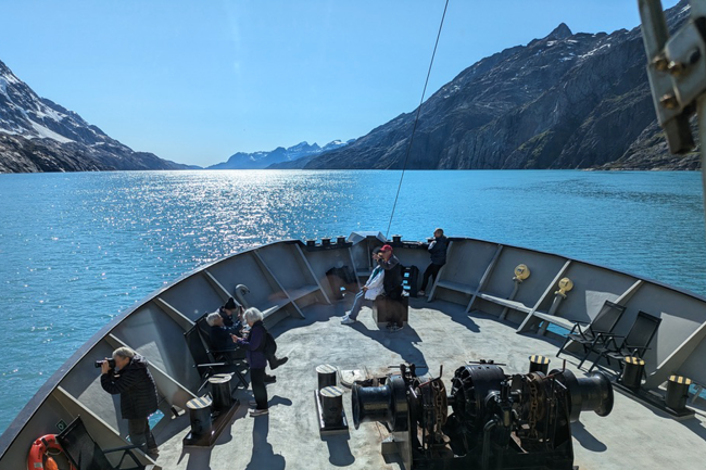 Ett litet fartyg förde mig hit – tillsammans med ett dussintal vänliga själar. Ett fartyg som inte är mycket större än det som Eric seglade i. Vårt fartyg har dock fördelen att ha en modern motor, ett stålskrov som tål is och en besättning som tar hand om oss.