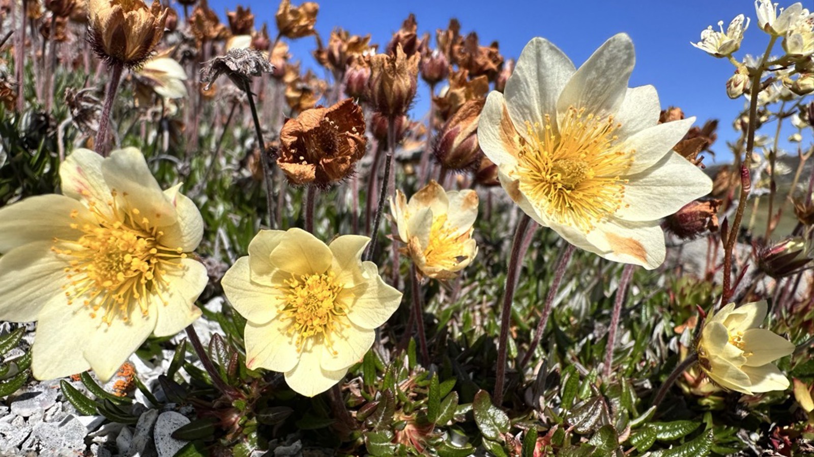 Jag går på en stig bredvid en dammig väg och landskapets färger är häpnadsväckande. Grönland. Grönt är det. Framför mig breder lila mattor av vild bergstimjan och safirblå ringblommor ut sig. Detta är en plats full av färg och oväntade blomdofter.