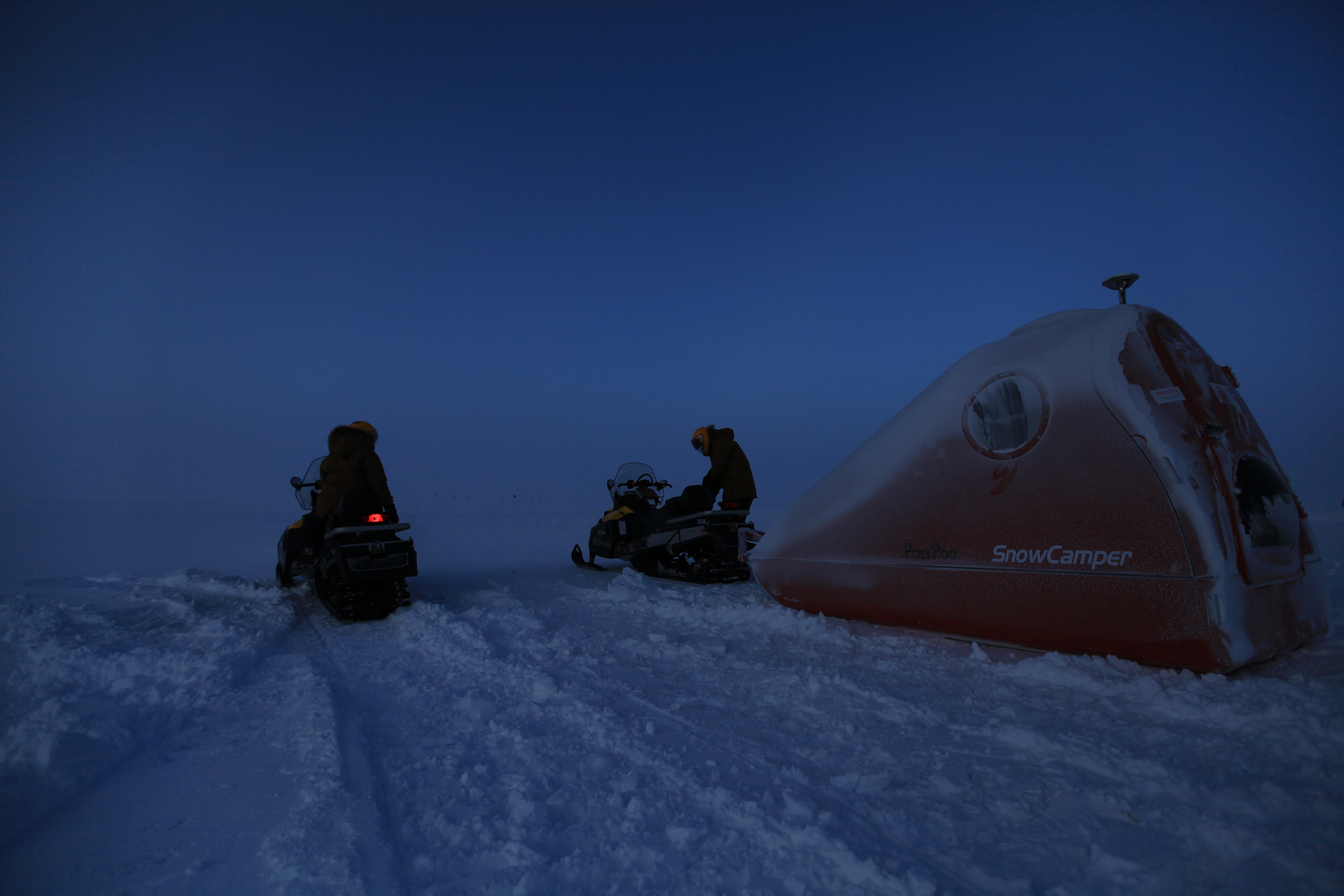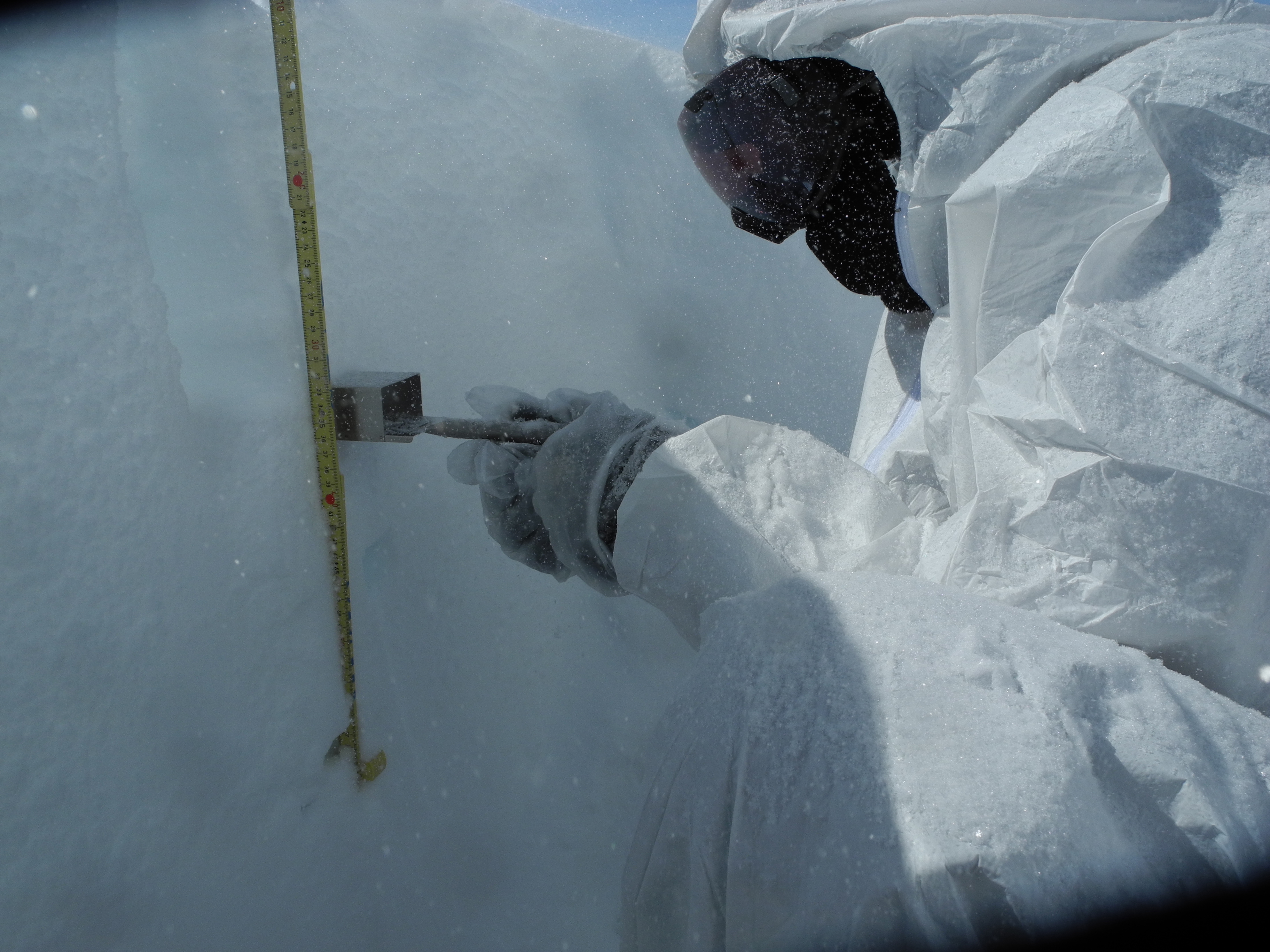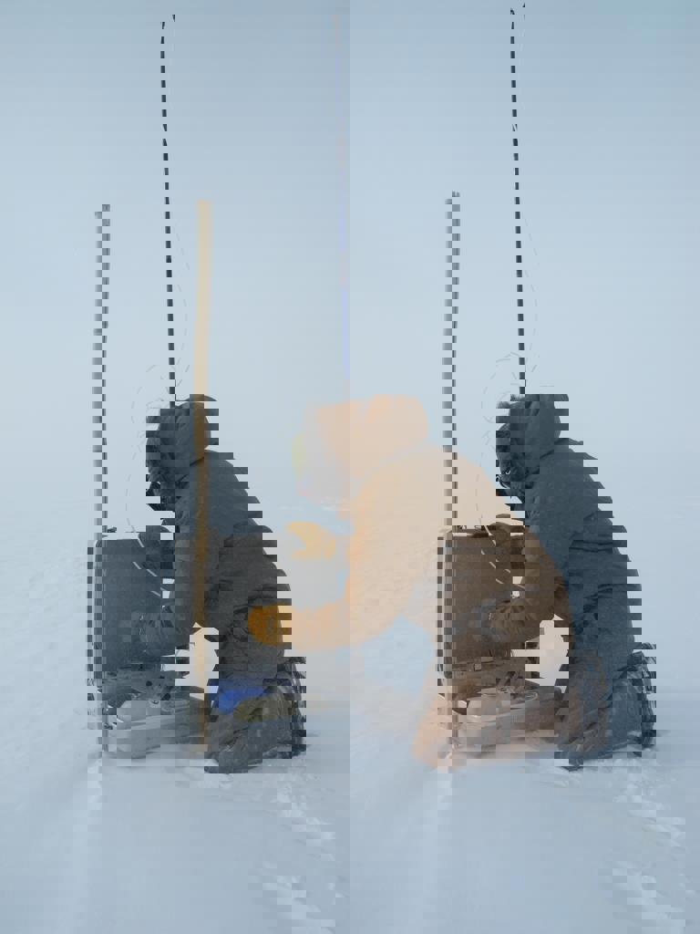 Varje månad genomförde vi långa skoterturer för att utföra höjdmätningar på snödrivor. Vi mätte hur mycket snö som hade fallit eller smält bort för att övervaka förändringarna. Dessa mätningar utfördes samtidigt som en forskningssatellit passerade över området, vilket gjorde att vi kunde kalibrera satellitens mätningar varje månad.