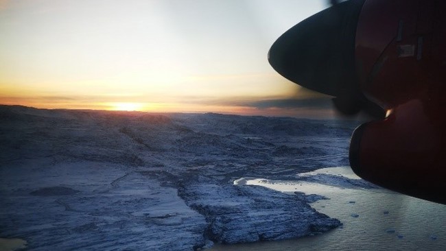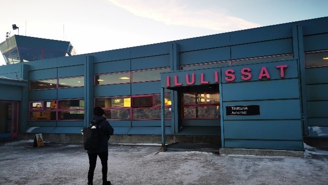 Ut i minusgrader till vita bergstoppar och pastellfärgadhimmel, Grönland välkomnar oss på charmigast möjligt vis. Flygplatsen i Kangerlussuaq byggdes under andra världskriget som amerikansk flygbas men är sedan många år tillbaka civil. Dock blir stoppet i Kangerlussuaq inte långvarigt då vi snart byter vårt lite större plan med TV-skärmar mot ett litet propellerplan med plats för endast 30 passagerare. Nu väntar en 45 minuter lång flygning till vårt slutmål på Grönlands västra kust.