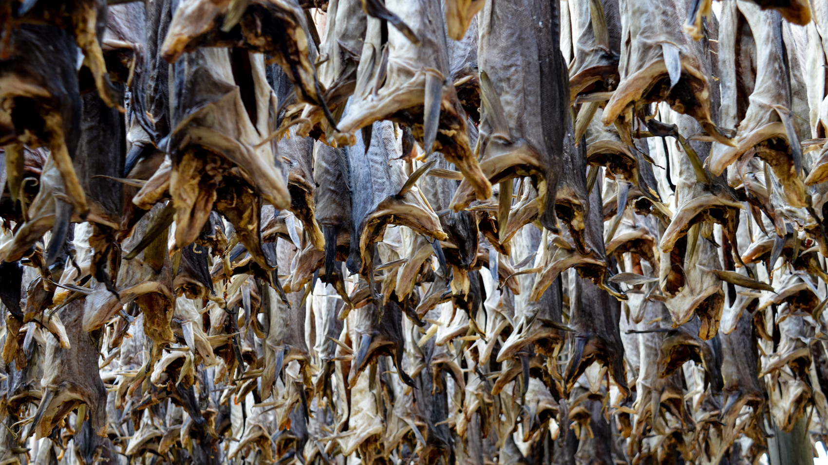 Under resans första natt, när vi lämnade Bodø bakom oss, hade vi turen att se grindvalar som simmade förbi precis intill fartyget. Nästa dag ankrade vi utanför Moskenesøya, en ö belägen långt ut i Lofotens västra delar. Vi hade en behaglig färd genom Sörvågen under morgonen och besökte lutfiskmuseet i Å under eftermiddagen. Det passade perfekt, eftersom vädret blev lite sämre under eftermiddagen och kvällen.