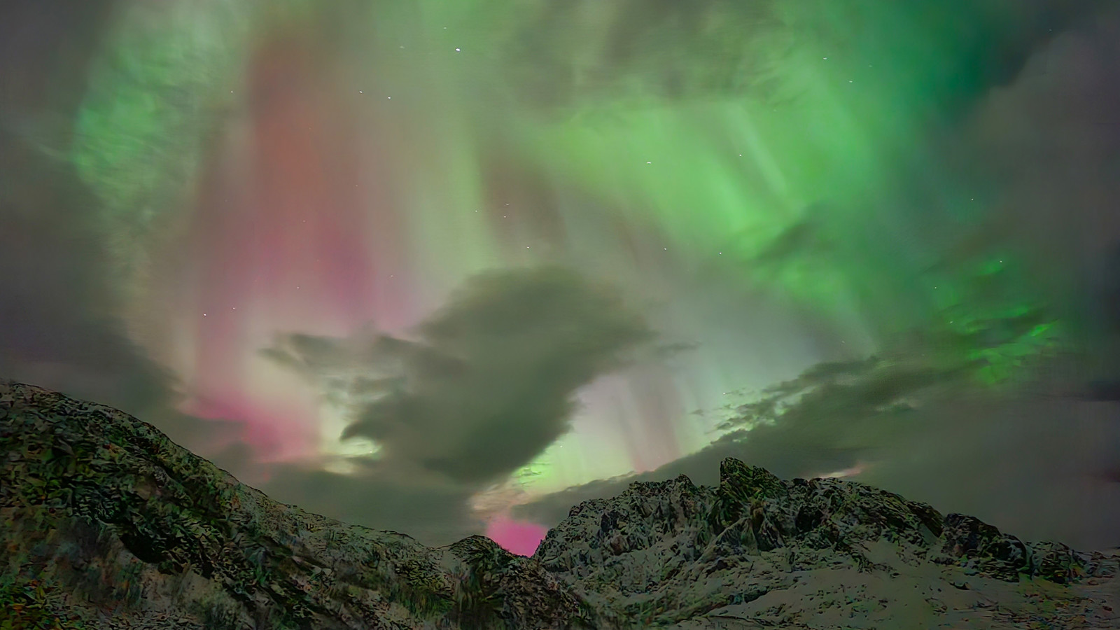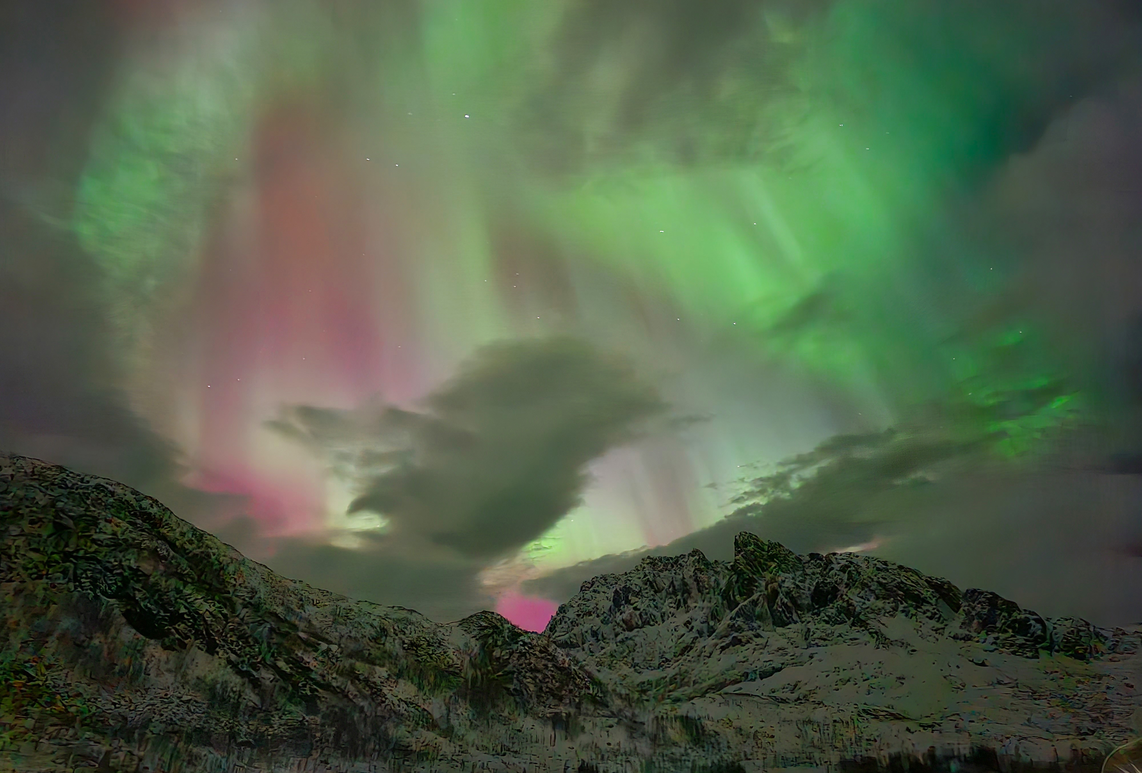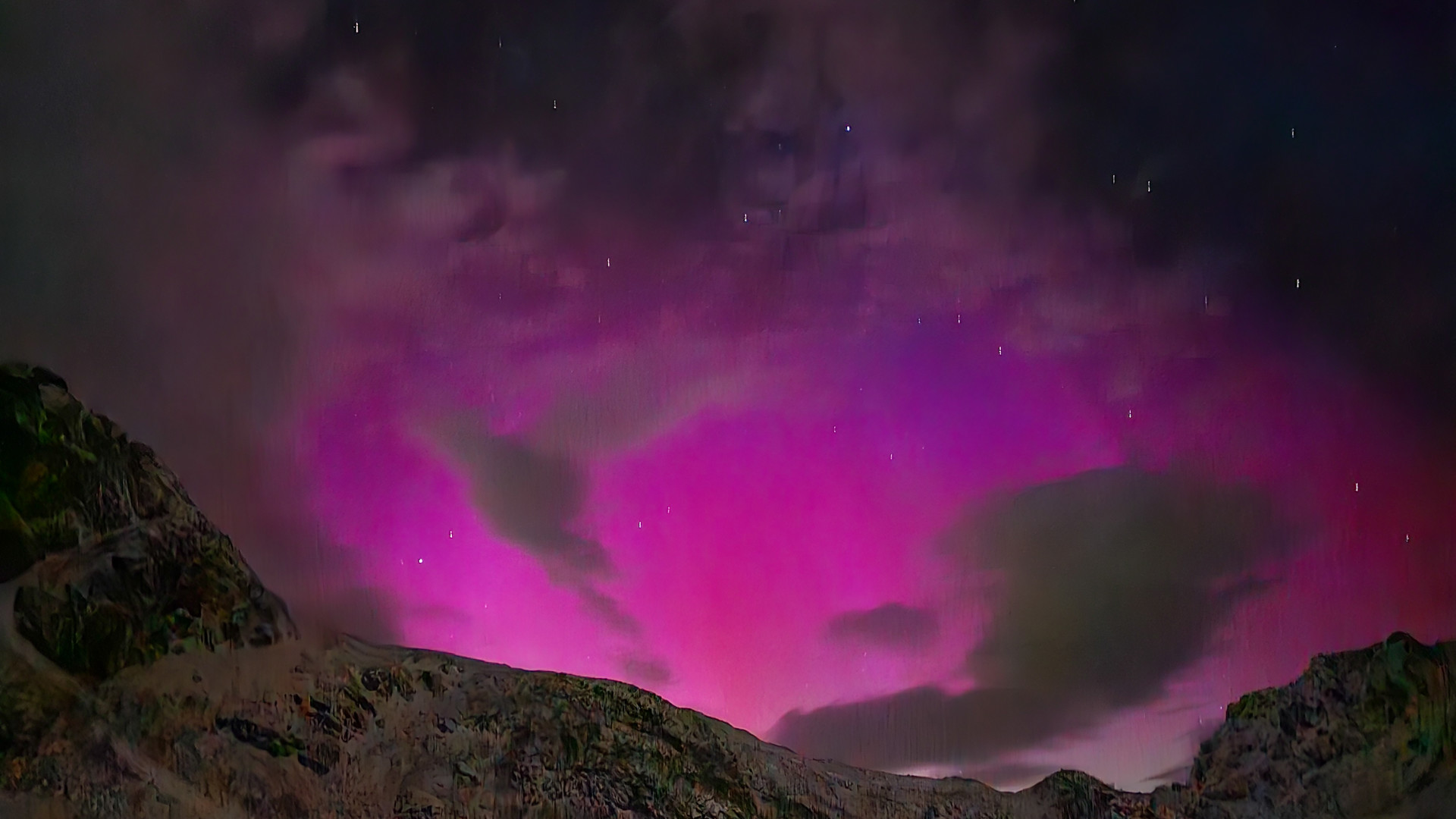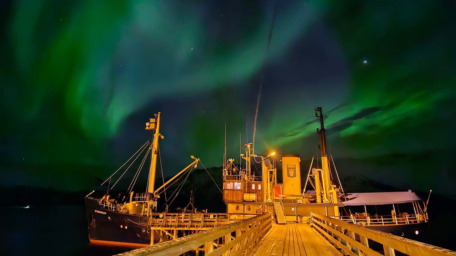 Den alltid vaksamma kanadensiska guiden Beau såg fenomenet och alla rusade ut ur salongen och ut på piren för att hitta en mörk plats där de kunde få en skymt, eller till och med en ögonblicksbild, av de svårfångade dansande damerna i skyn. Färgglada skurar av rött, rosa, lila och grönt lyste upp himlen.