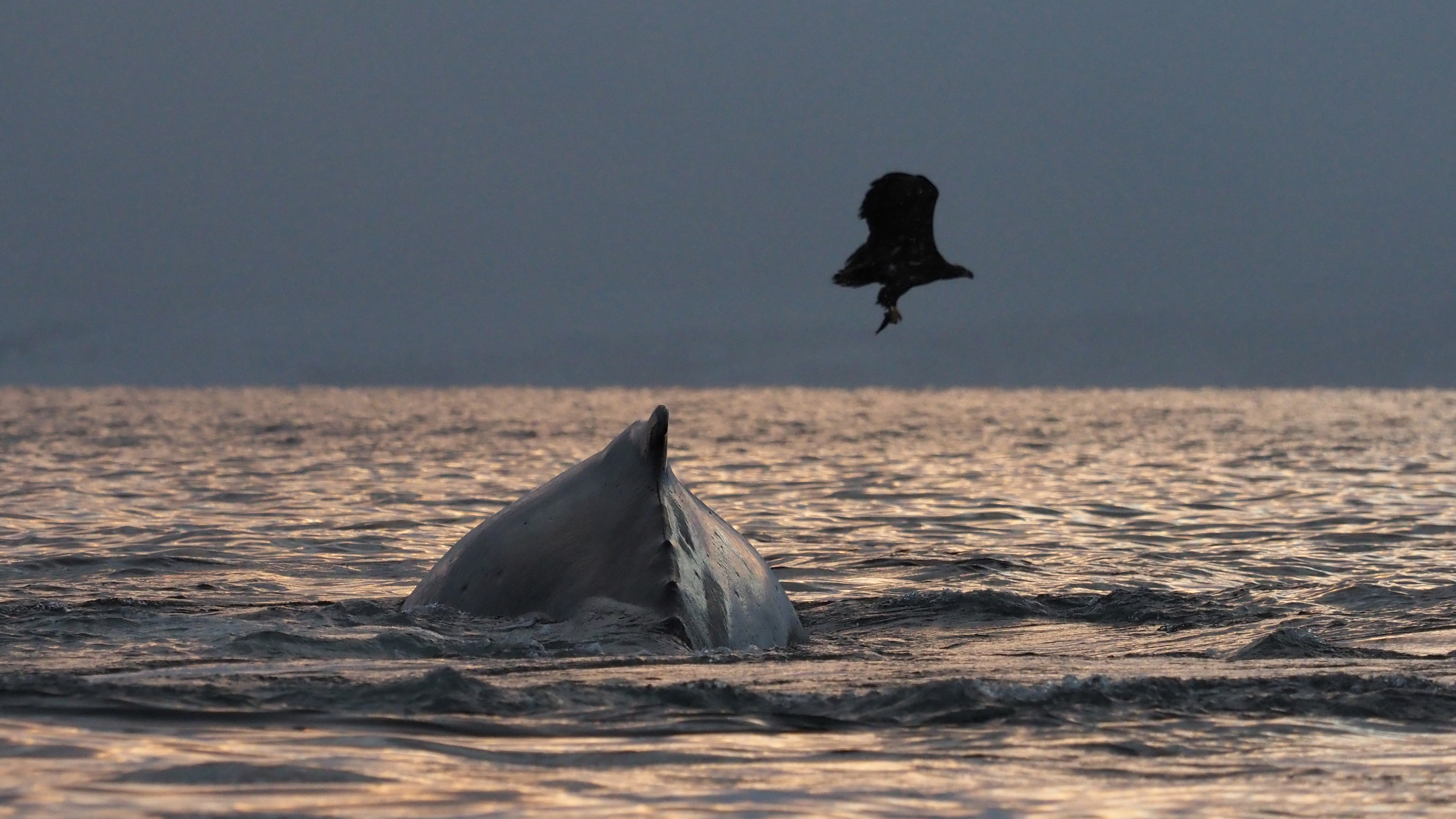 När ljuset bröt sig igenom kunde man se en och annan späckhuggare som patrullerade efter sill. Det var så tidigt att även flera knölvalar sågs, sovande vid ytan som stora stockar.