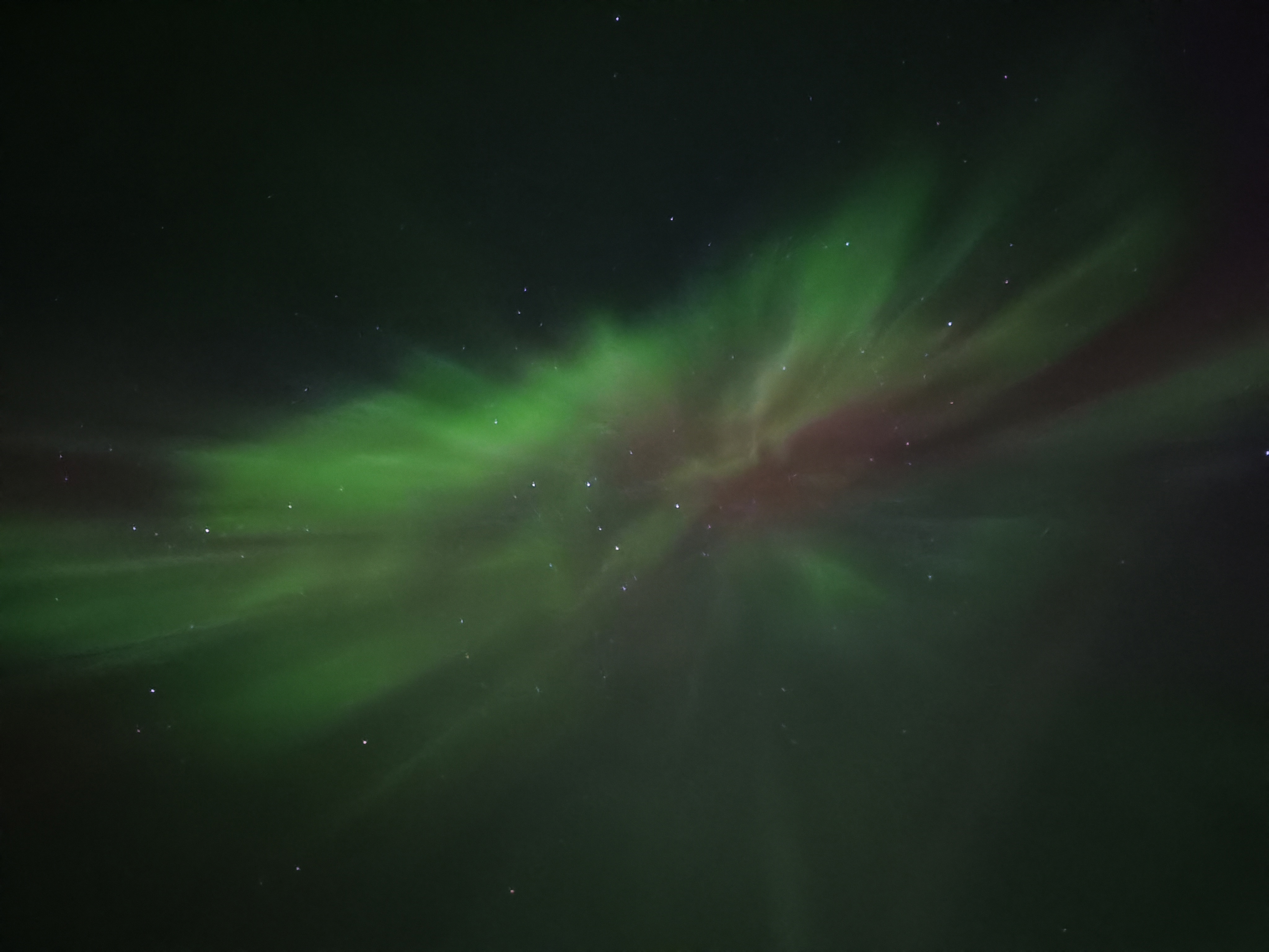 Långsamt men säkert flätades gröna och röda linjer samman över den klara himlen ovanför fartyget medan vi fotograferade. Och sedan, rakt ovanför oss, exploderade himlen i ljus. En corona öppnade sig – en mycket välkommen corona i jämförelse med vissa mindre välkomna varianter av osäker härkomst. Grönt, rött och rosa svepte ner över oss medan vi blickade upp mot naturens under.