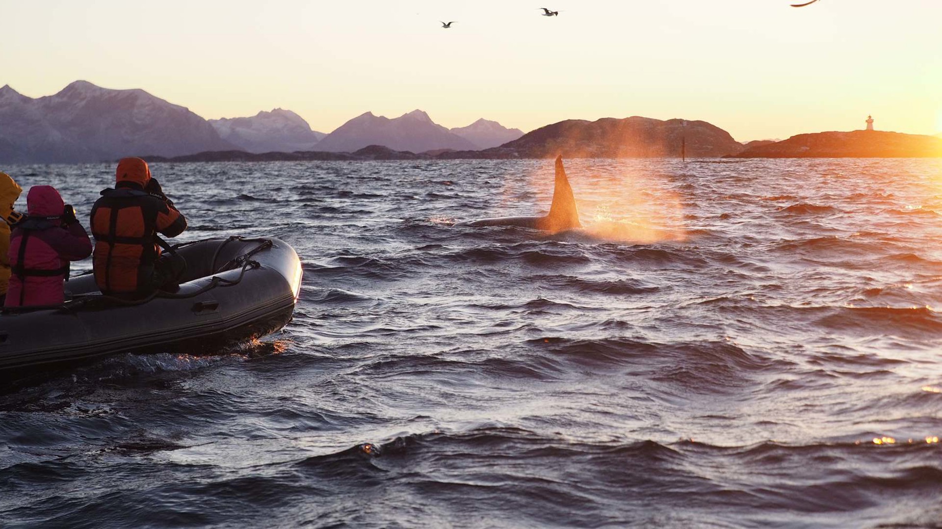 Att färdas i en stilla fjord, kantad av snötäckta bergstoppar samtidigt som en grupp späckhuggare simmar förbi, är en näst intill overklig upplevelse. Detta och mycket därtill fick våra resenärer uppleva när fartyget M/S Stockholm i november förra året begav sig ut i fjordarna utanför Tromsö. Hundratals späckhuggare har de senaste åren samlats här, i jakt på de stora sillstim som har valt att övervintra i området. Resorna bjöd på strålande väder, pastellfärgade himlar, nyfikna knölvalar och magiska norrsken, men framförallt bjöd de på många nära möten med späckhuggare - från fartyg och gummibåt, i soluppgång och solnedgång.