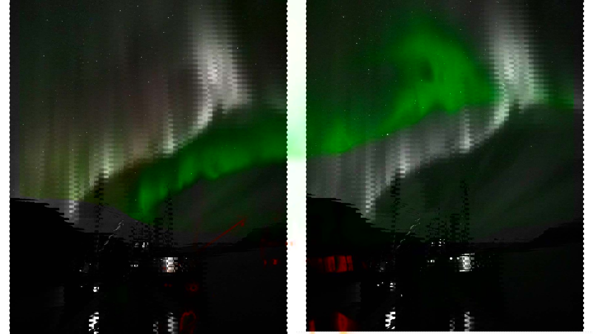 Jag hade sett norrsken en gång tidigare i mitt liv, och fast det inte varade särskilt länge eller var särskilt starkt kändes det magiskt att se det gröna skenet dansa över natthimlen, och sedan dess har jag drömt om att få se det igen. Med vetskap om att Tromsø med dess unika läge, beläget på 70 grader nord och rakt under den så kallade norrskensovalen, är en av de platser i världen där norrsken mest frekvent uppstår, kan jag inte påstå annat än att jag innerligt hade hoppats på en tillräckligt klar kväll för att jag ännu en gång skulle få se det vackra ljusfenomenet. Och det fick jag! Runt klockan elva en stilla kväll gick vi för att väcka de gäster som hade gått och lagt sig eftersom vi samma eftermiddag hade lovat att inte låta dem missa något. Trots att det var ganska sent och lite kyligt tror jag att alla som klev upp för att ta del av skådespelet varken har eller kommer ångra att de gjorde det.
