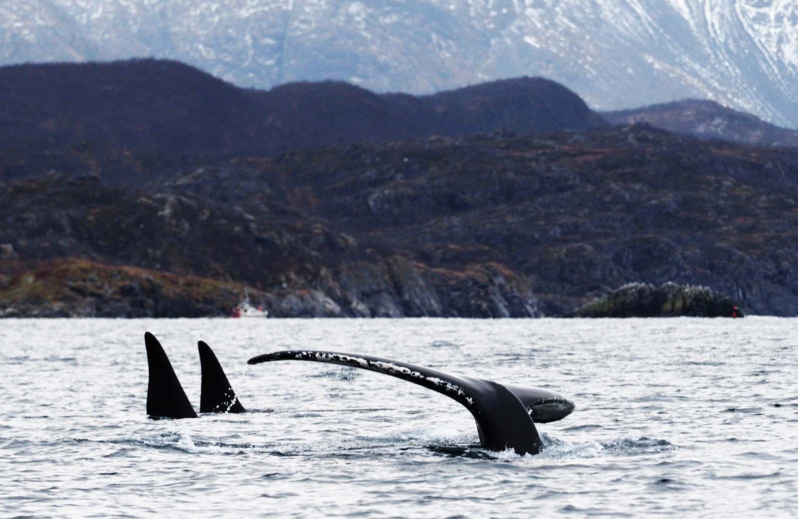 Inte nog med att späckhuggare cirkulerade runt fartyget i deras jakt på sill, bland dem fanns också ett par knölvalar, och under vår resa skulle vi hinna uppleva flera fantastiska möten med dessa imponerade havets giganter. Ett par på riktigt nära håll dessutom.