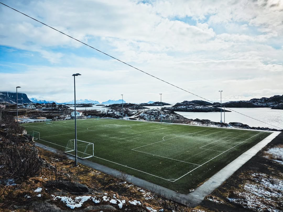 Nästa stopp: Henningsvær, en stad med en ganska välkänd fotbollsplan belägen på en klippig holme i utkanten av samhället.