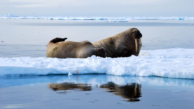 En lugn natts färd mot norr tog oss urbota bittida till en snötäckt sandrevel där ett helt dussin av de karismatiska valrossarna var på plats, försänkta i en lika djup sömn som den vi just tvingats ut ur av vår expeditionsledare.