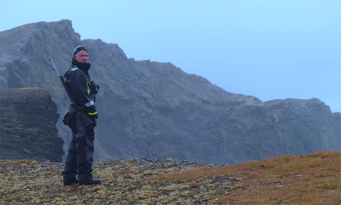 Nils Carlsson på en sällsynt landstigning på Björnön.
