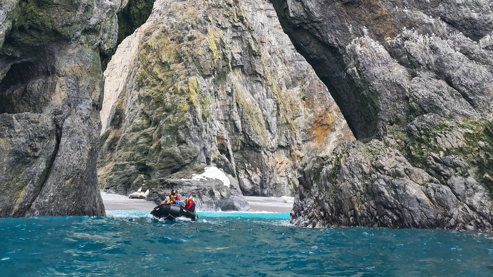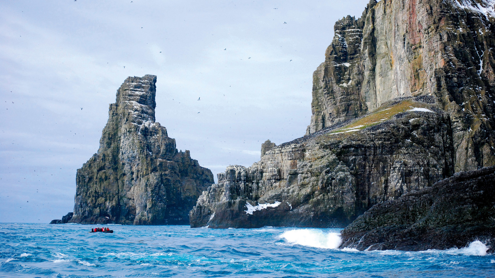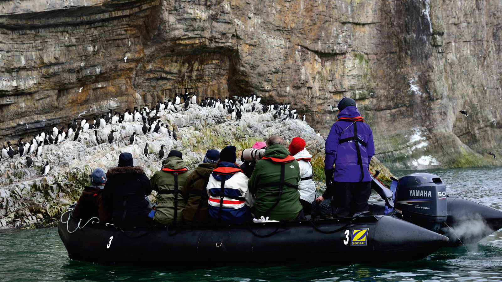 Nästa mål är den mytomspunna Björnön, som ligger mitt emellan Nordnorge och Svalbard. Dess utsatta läge gör det sällsynt att kunna gå i land, men om vädret tillåter kan vi göra en spännande Zodiackryssning bland dramatiska klippor med tinnar, torn och grottor.