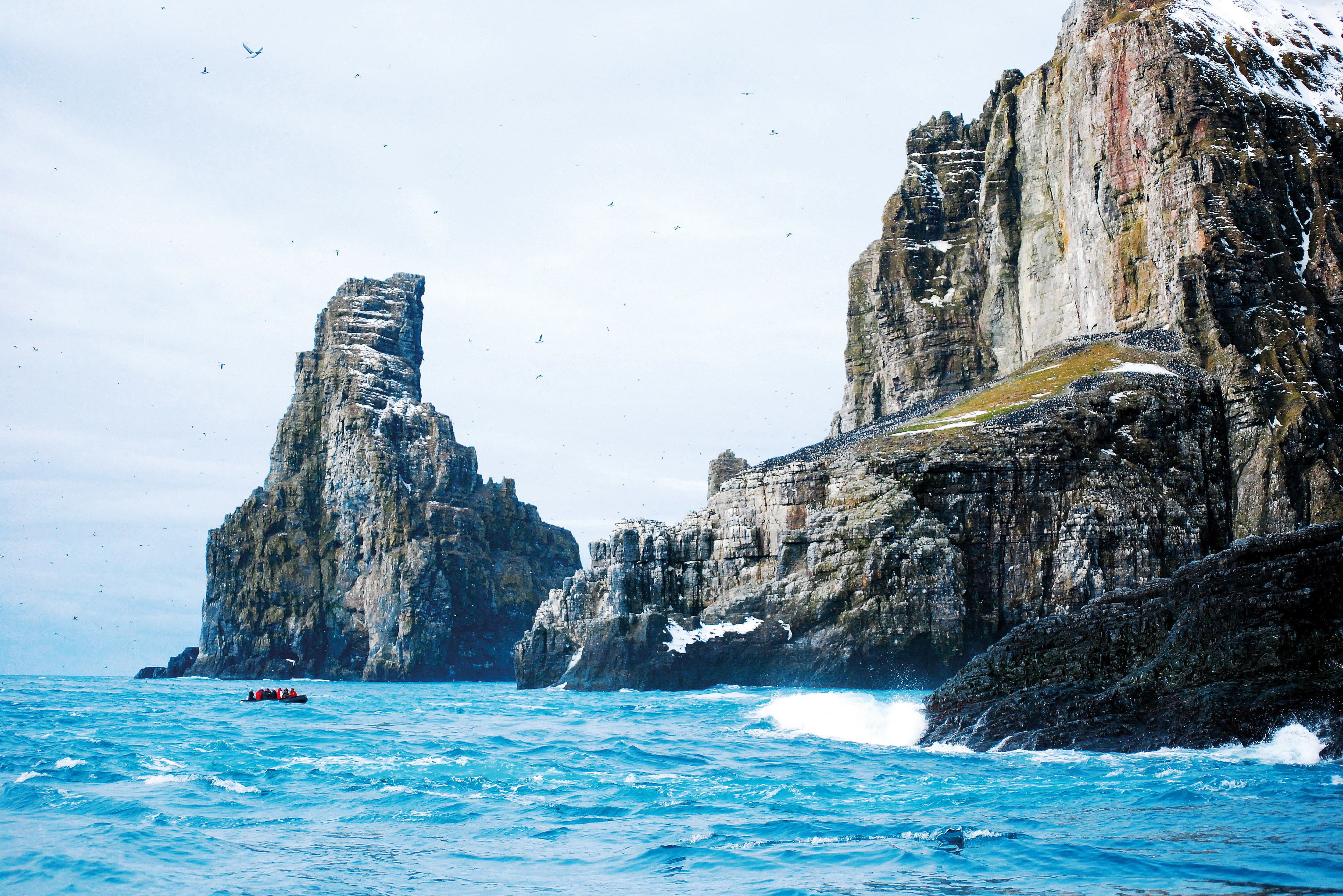 Här finns en av de största havsfågelkolonierna på norra halvklotet, med över en miljon fåglar under häckningssäsongen.