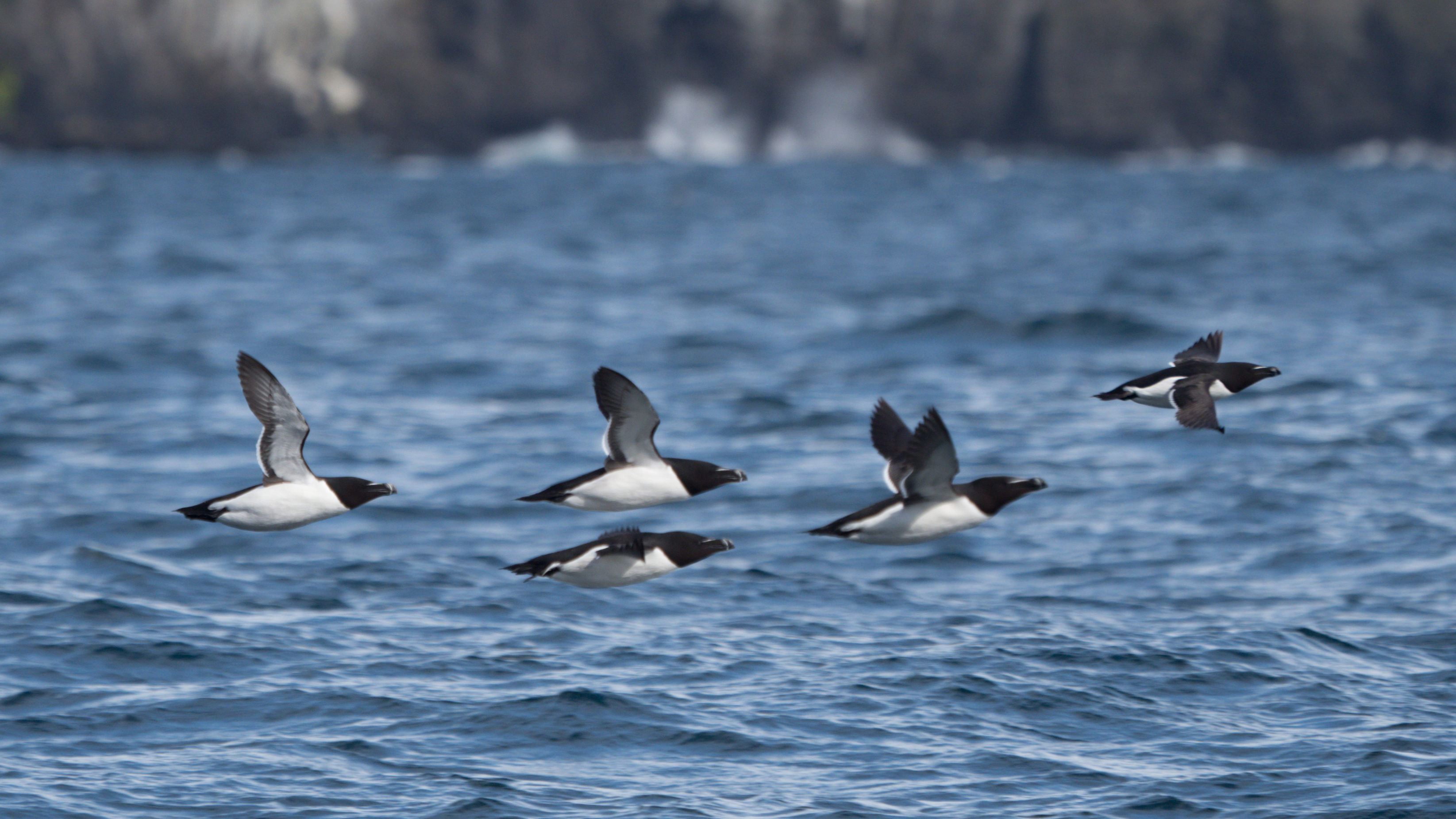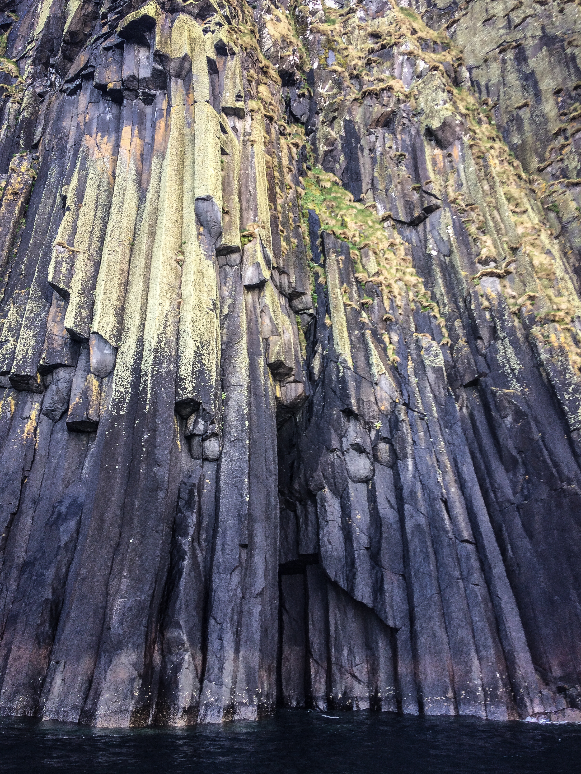 Efteråt seglade vi nordväst mot Shiantöarna, en liten ögrupp av basaltöar med branta klippor som en gång i tiden var bebodda av bönder som brukade marken där. Nu för tiden är öarna endast hem åt sjöfåglar och sälar. Under en Zodiackryss tog vi oss närmare klipporna och de förtrollande grottorna: tordmular och grisslor flög över våra huvuden eller flöt i grupper på vattenytan, skärpiplärkor fyllde luften med deras sång, stormfåglar häckade på klippavsatserna, vi såg lunnefåglar och överallt omkring oss trängdes sälar, både i vattnet och på klipporna. På avstånd såg vi hur små fiskebåtar från yttre Hebriderna plöjde genom vågorna medan ett par havsörnar seglade högt ovanför dem. Den här dagen bjöd verkligen på allt det bästa Hebriderna har att erbjuda – spännande historia och storslagen natur, både på hav och land.