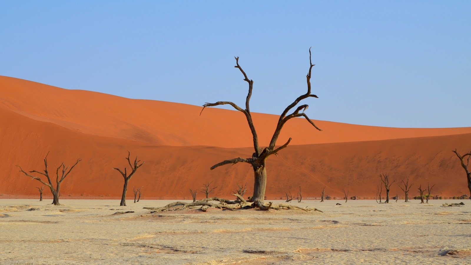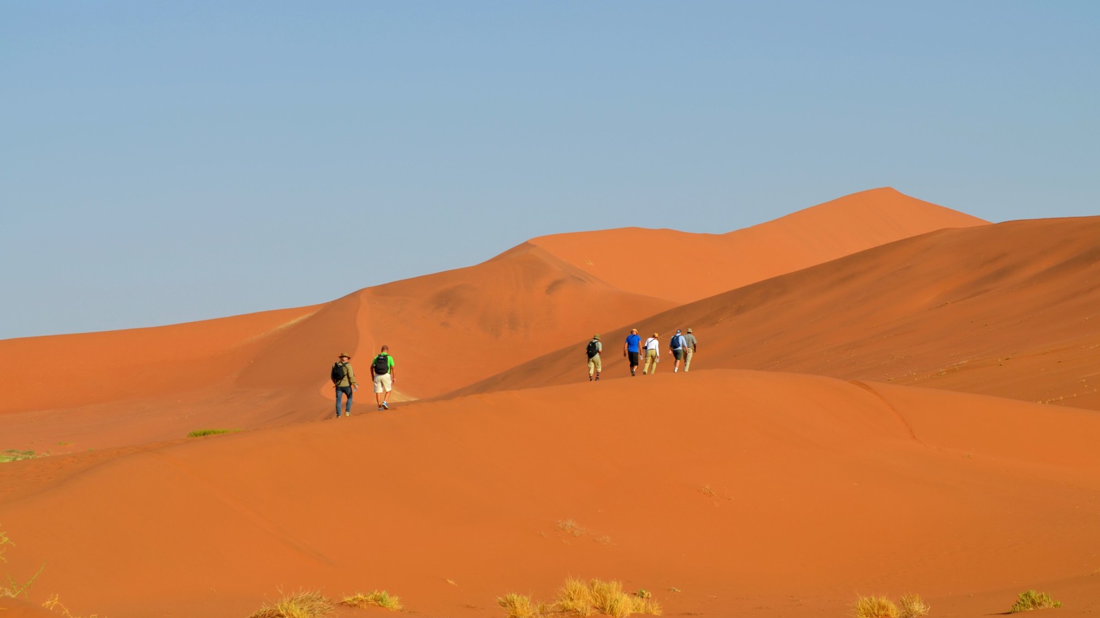 När vi kom tillbaka passade några på att svalka av sig i poolen medan andra spanade efter oryxantiloper och andra djur som ibland passerar lodgen. Senare på eftermiddagen, när det blivit lite svalare, hoppade vi in i jeeparna för att utforska Sossusvleis böljande sanddyner till fots. Några av oss besteg en av de mäktiga sanddynerna, en annorlunda upplevelse som bjöd på svårslagen utsikt över ökenlandskapet. De som stannade nedanför kunde vandra omkring bland de 2000 år gamla, döda träden. Dessa uråldriga träd skapar tillsammans med den blå himlen och den orange-röda sanden, en scen som är svår att fånga på bild någon annanstans i världen och finns förmodligen med på de flesta fotografers drömlista. Det är dock inget för dem som är rädd för att få sand mellan tårna!