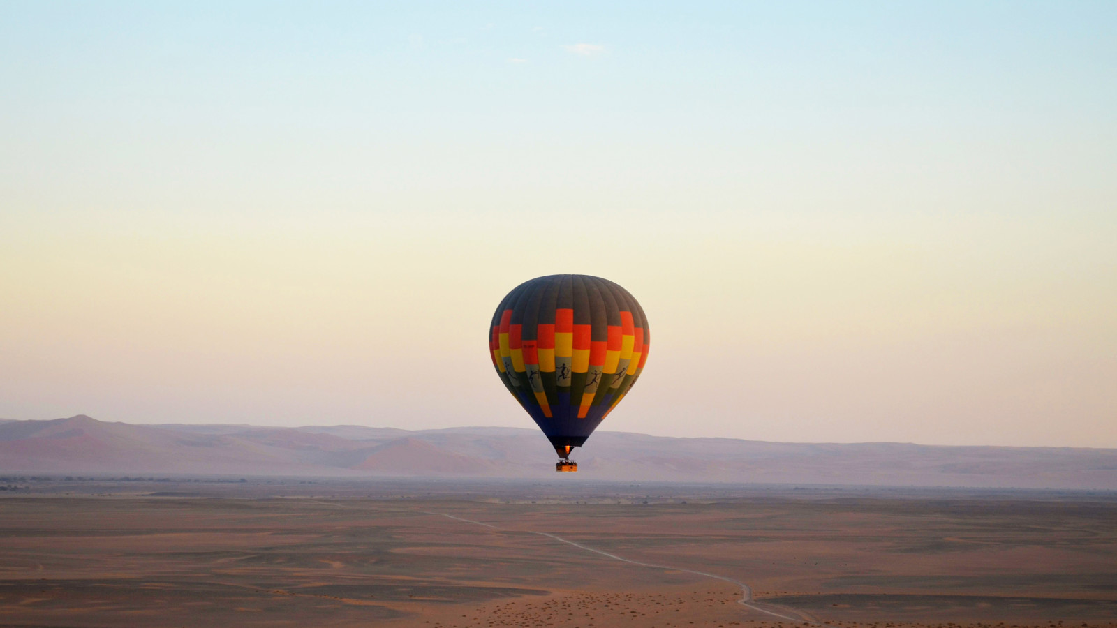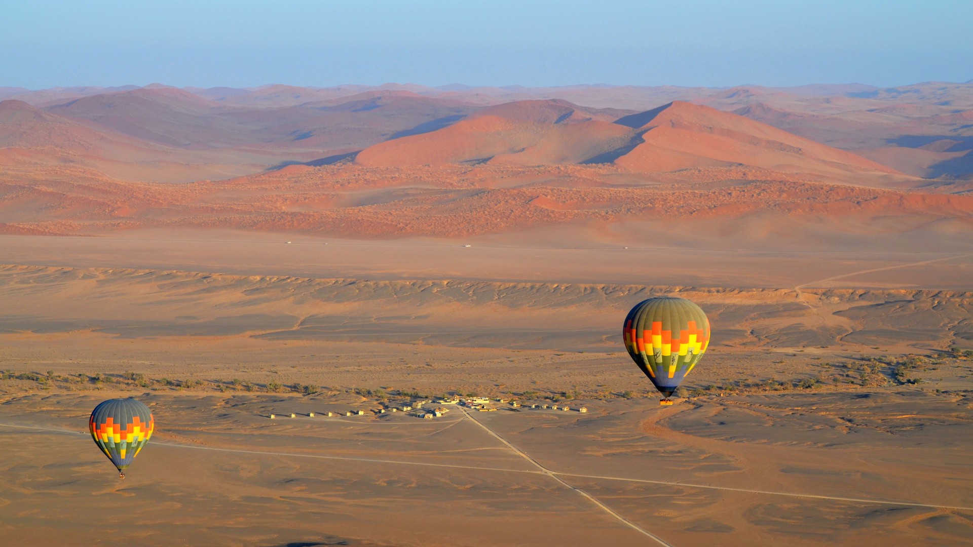 Det är svårt att ge en rättvis bild av denna oförglömliga dag mitt i Namiböknen, den borde helt enkelt återupplevas på plats! Lika svårt är det att försöka förmedla känslan som infann sig när vi dagen innan, efter en lång men spännande resa genom Namibias vilda ökenlandskap, kom fram till Little Kulala Lodge, en liten oas med utsikt över Sossusvlei – Namiböknens världskända, ockraröda sanddyner. Vi steg upp i ottan och 06:00 satte vi oss i jeeparna. Vädret var på vår sida: ingen vind, molnfritt och rätt temperatur. Det verkade som att vi skulle få chansen att få uppleva de röda, otroligt vackra sanddynerna från en luftballong. Hade vi tur skulle vi lämna marken precis när solen gick upp och förväntningarna som låg i luften gick nästan att ta på. Vi kunde se ballongen jämte försvinna bortåt och plötsligt svävade även vi över marken, högre och högre upp i det blå. Jeeparna och människorna nedanför var snart bara små prickar och framför oss bredde Namiböknens karga, oändliga landskap ut sig. Dagens första solstrålar värmde och skapade fantastiska scenerier i vilken riktning vi än tittade. Ljuset, tystnaden, vyerna – alla var vi mållösa. Väl nere på marken igen väntande en magisk ökenfrukost, uppdukad på vita dukar. Vilken morgon!