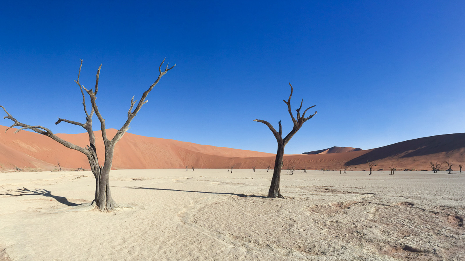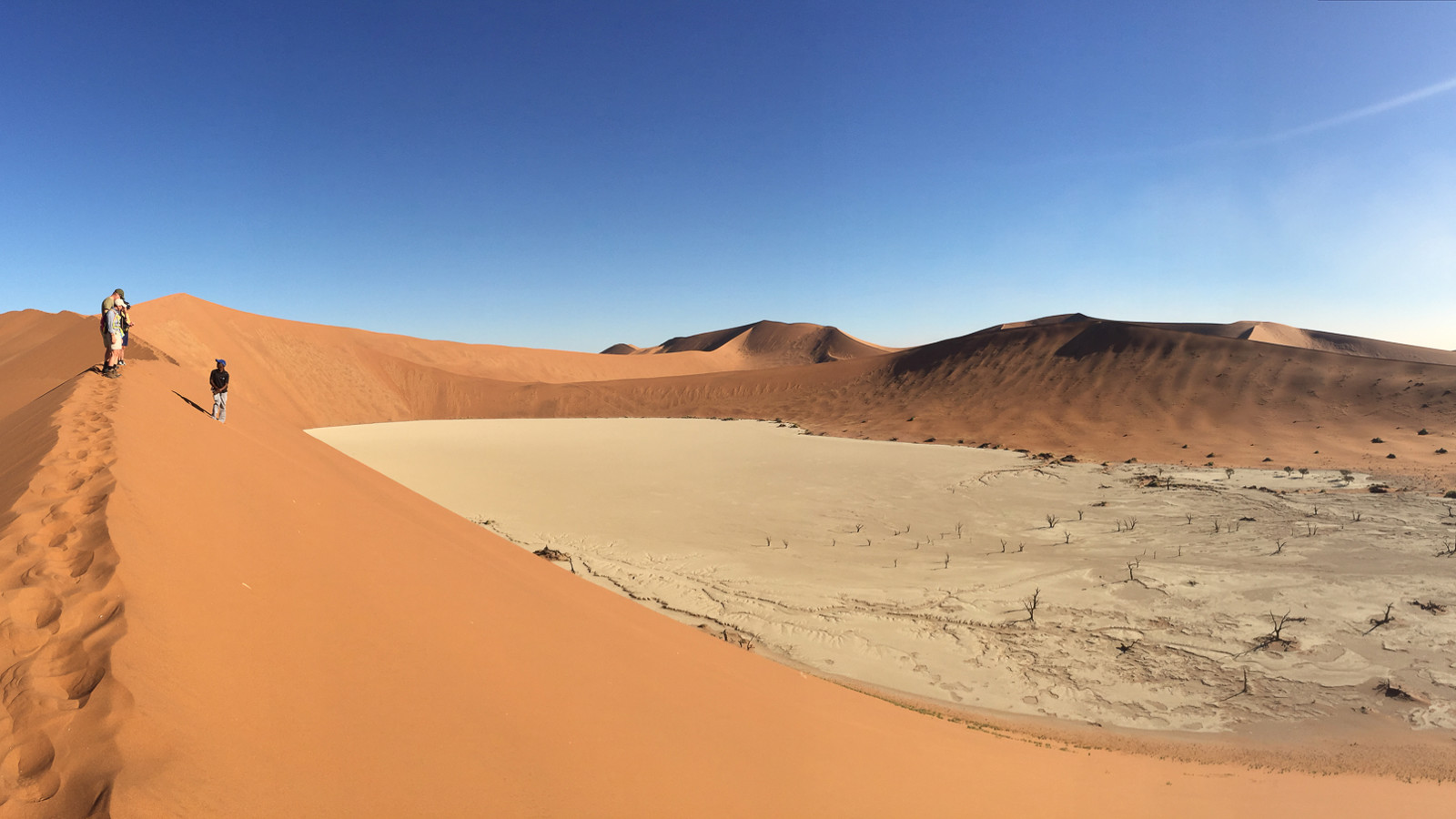 Senare på eftermiddagen var det dags att utforska sanddynerna till fots och vi vandrade in i sanden mot en plats som heter ”Dead Vlei”. Det passande namnet syftar på de döda akaciaträd som stått döda i den torra leran i närmare tusen år. Torkan har helt enkel mumifierat träden i denna surrealistiska, men färggranna plats.