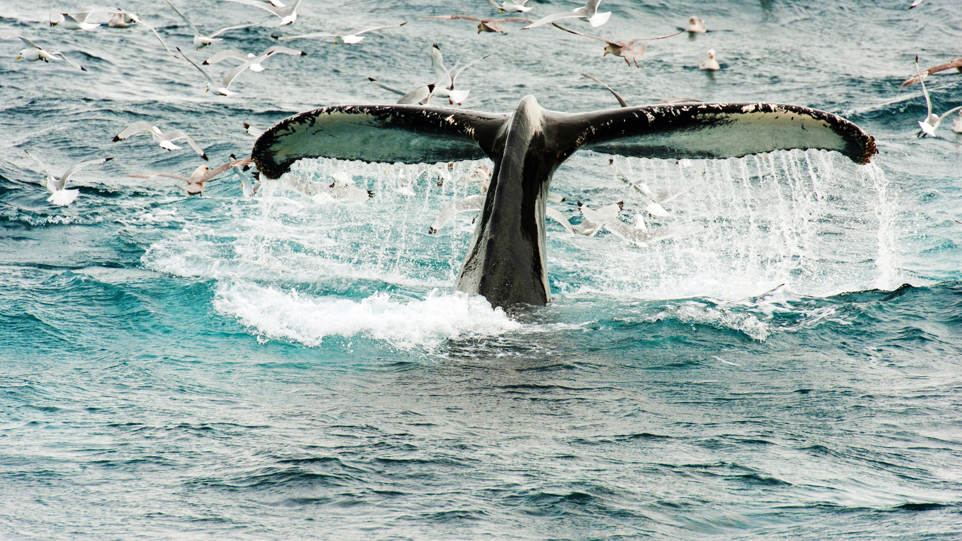 Knölvalen är känd för sina höga hopp som ofta gör att hela dess stora kropp hamnar ovanför vattenytan. Det är en imponerande syn. När den sedan faller tillbaka gör den det med ett väldigt plask vilket skickar signaler till andra knölvalar.