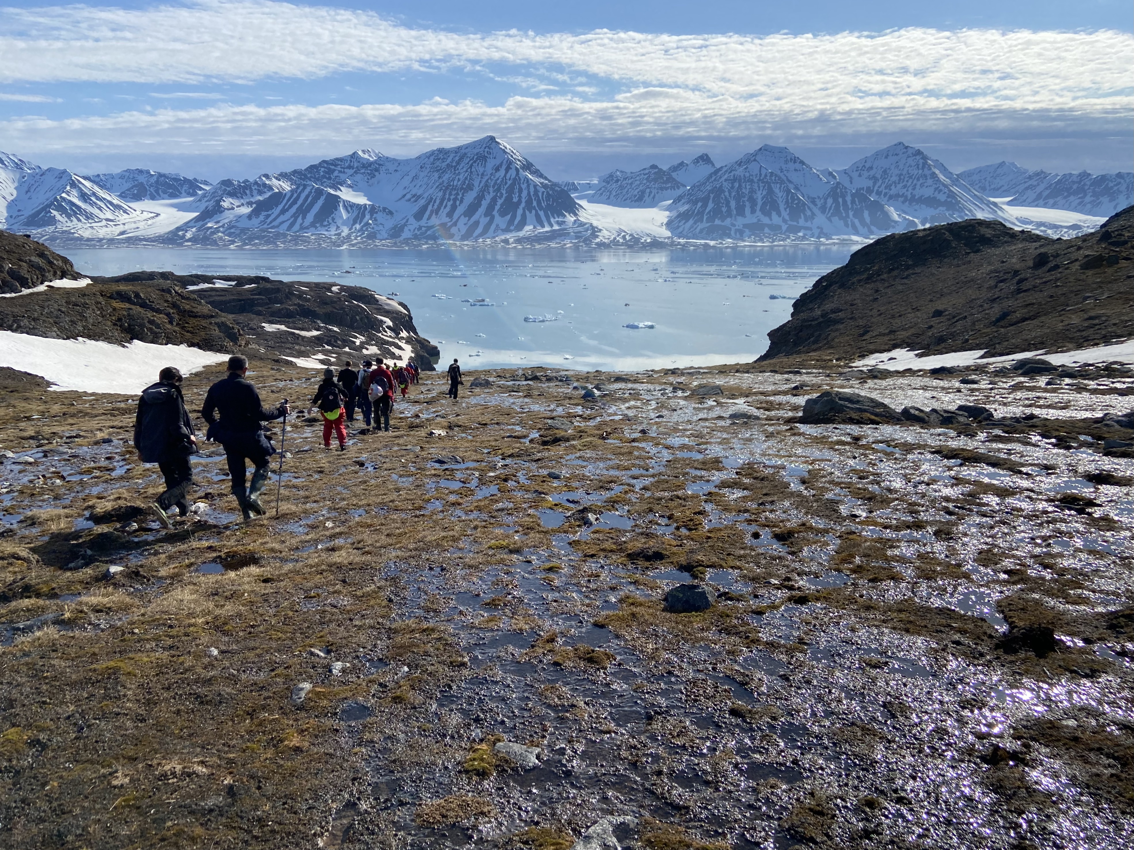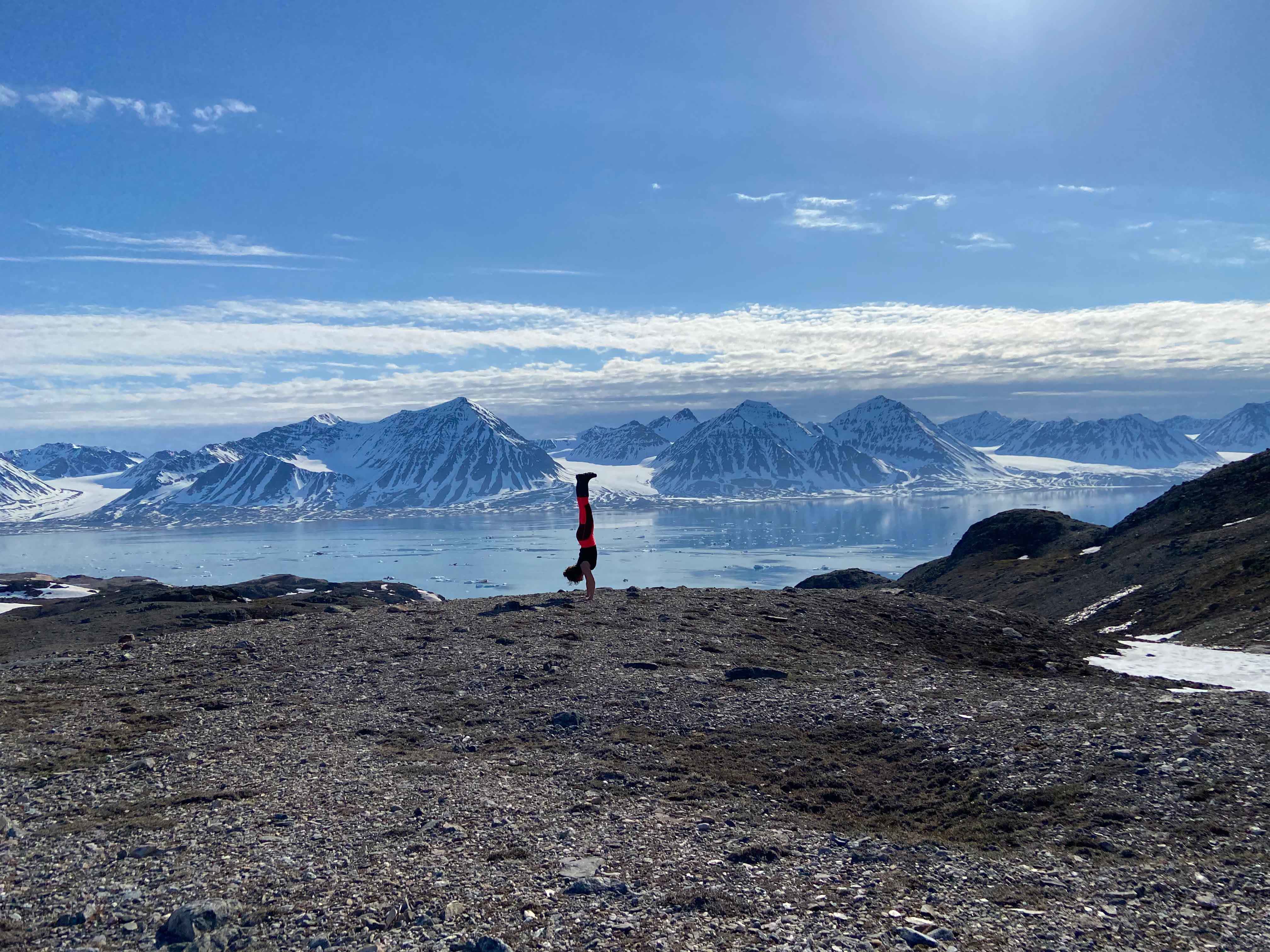 Ett annat väldigt starkt minne var när vi vandrade upp på en höjd i Ossian Sars. På vår expedition hade vi nämligen turen att ha med ett gäng yoga-resenärer med yogainstruktör, Isabel i spetsen. Väl uppe på toppen frågade Isabel om någon hade lust att delta i en kortare meditation. Vi var flera som slog oss ner på marken och med benen i kors och händerna på knäna ledde Isabel oss i en lugn och stilla meditation. Givetvis fick det bli en meditation där vi inte blundade, för utsikten vi hade från platsen vi satt, den ville man inte missa en sekund av. Det blev en väldigt rofylld och stämningsfull stund tillsammans.