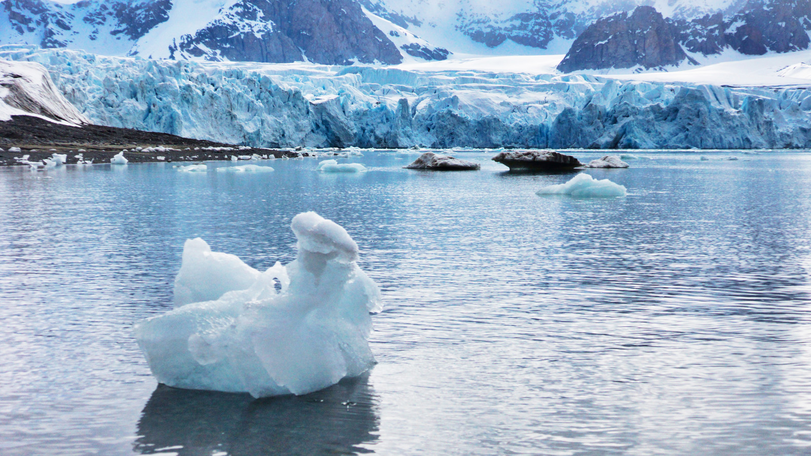 Vår tredje vandring skedde i sann expeditionsanda. Den tidiga morgonen bjöd på ett uppfriskande solsken som vi absolut inte ville missa, och efter en kort Zodiackryss bestämde sig vår expeditionsledare för att göra en landstigning och låta oss sträcka på benen istället för att direkt köra mot glaciären som det först var tänkt. Tillsammans med vår guide Rutger Bianchi blev en promenad längs med stranden till en äventyrlig vandring. På nära håll kunde vi utforska de smältande isblock som låg längs med stranden där de sakta förvandlades till konstverk av otroliga former och färger. Tillslut var vi så nära glaciären att expeditionsledaren meddelade att vi skulle fortsätta att gå, så skulle de andra guiderna komma med Zodiacer för att hämta oss. Vilken lyx.