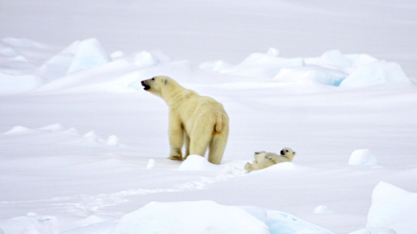 Dag 3 råder spänd förväntan ombord. Fartyget ska ta oss så långt vi kan komma innan packisen tar vid. Här finns stor chans till ett möte med Arktis okrönte konung - isbjörnen. Under kvällen ankrar fartyget upp i isen. Det är en mäktig syn. Den ogenomträngliga isen breder ut sig framför oss. Den totala tystnaden är påtaglig – det är bedövande vackert. Guiderna ombord delar upp natten i skift, de kommer att spana efter isbjörn hela natten. 01:30 kommer uppropet i högtalaren, man har skymtat en hona med unge på isen. Kläderna ligger redo vid fotänden av sängen. Efter bara några minuter har ett tiotal sömndruckna människor samlats på däck med kikare, men vi ser henne inte. Dimman tätnar och de flesta går och lägger sig igen. Falskt alarm, men jag sitter kvar. Beundrar Arktis skönhet, förundras över ljuset och känner ett fullkomligt lugn. Efter någon timme lättar dimman igen och där är hon! Jag ser henne genom tub-kikaren. Hon är nog några kilometer bort. Avstånd är svåra att bedöma i Arktis vidsträckta landskap. Hon går över isen med sin unge efter sig, stannar med jämna mellanrum och vädrar i luften. Kallar på ungen när avståndet blir för stort. För mig är det ett magiskt första möte med drottningen av Arktis, ett möte som känns nära trots det stora avståndet. Först klockan 04:00 ligger jag i sängen igen.