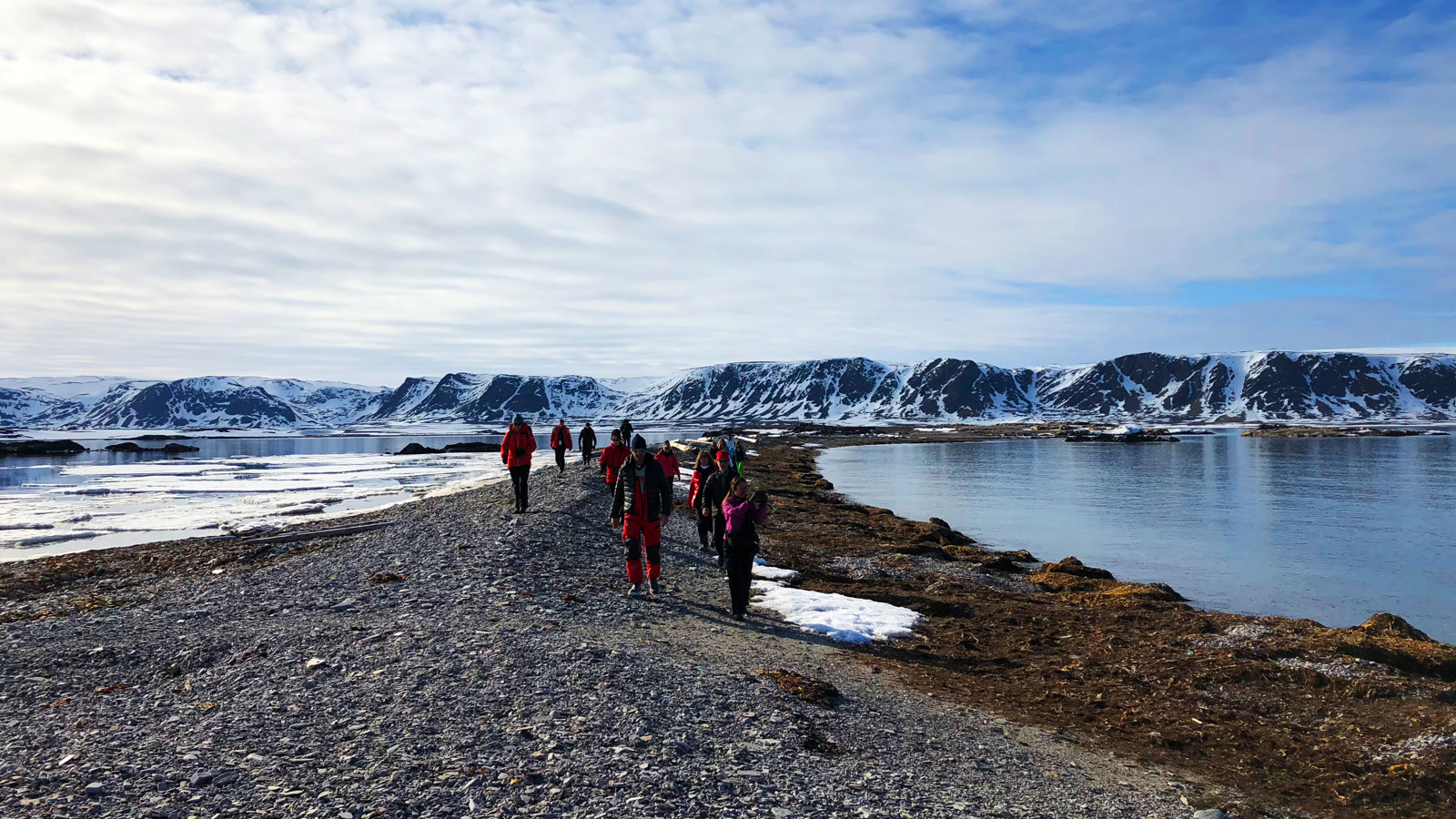 Dag 2 ankommer vi Alkefjellet. Det ligger en trolsk dimma över sundet. Jag går ut på däck och tar några djupa andetag. Känner lungorna fyllas med luft. Någon har sett årets första vitval och vi lämnar fartyget i gummibåtar, passerar spektakulära klippformationer. På avsatserna häckar tusentals spetsbergsgrisslor. Några polarrävar kikar nyfiket på oss från stranden och jag inser plötsligt att jag har suttit i gummibåten i två timmar och beundrat de små pingvinliknande fåglarna. Två timmar känns inte länge, för tiden blir annorlunda i Arktis. Tiden blir annorlunda när allt fokus är på upplevelsen.
