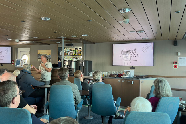 Inte bara under föreläsningarna vet Doug hur han ska fängsla oss med sina inspirerande berättelser, han tar sig också tid att mingla med gästerna och, när så önskas, ge tips och tricks under till exempel Zodiac-kryssningarna eller en promenad.