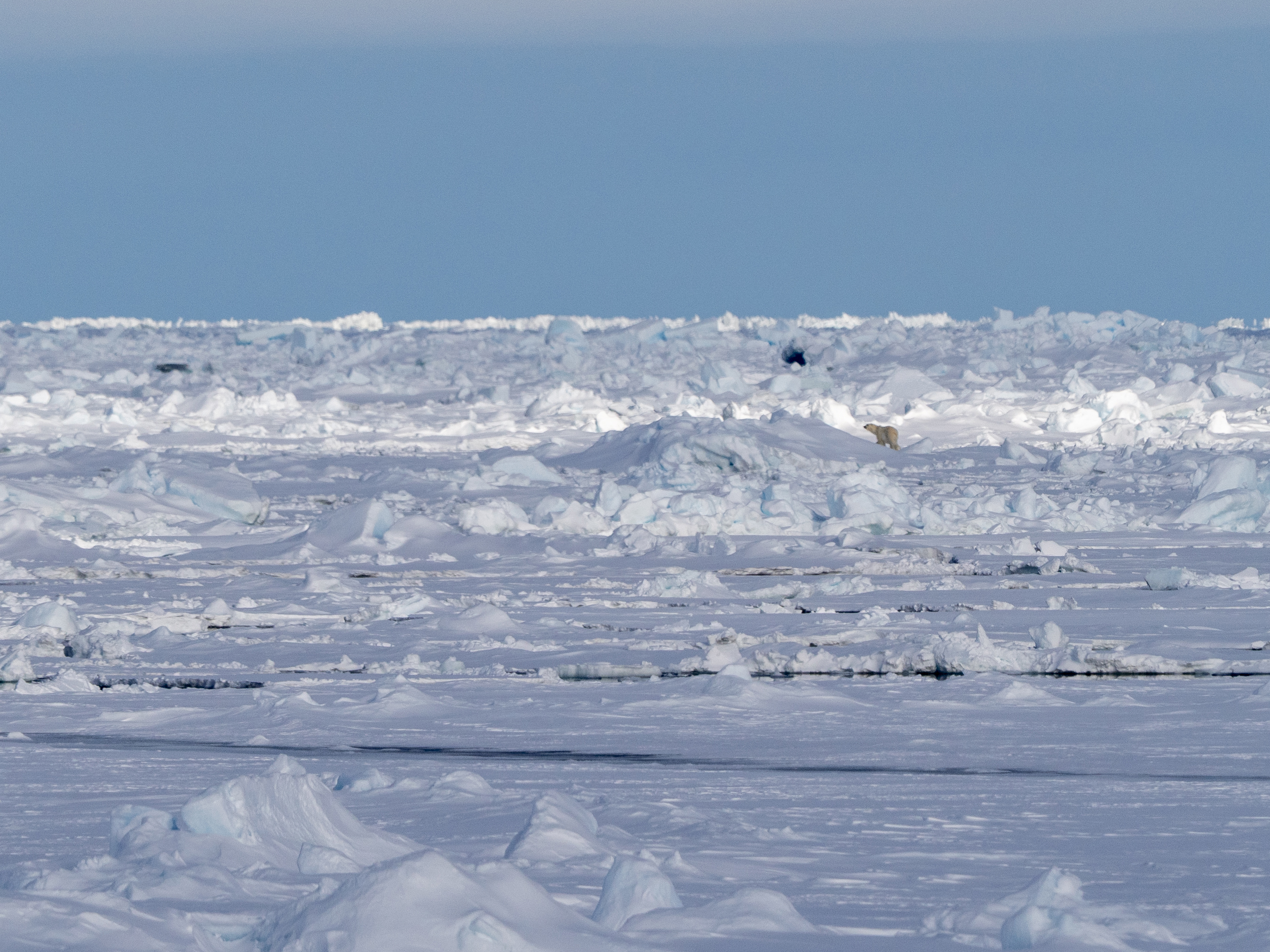 Det var svårt att upptäcka björnen – den befann sig långt bort på isen, smälte in perfekt i den frusna omgivningen och rörde sig snabbt. Med kikaren i handen hjälpte jag gästerna att hitta den, ”följ den stora isberget eller bakom den lilla vattenpölen”, tills det äntligen var dags att utbrista: ”Ja, jag ser den!” Jag såg förvåningen sprida sig över deras ansikten när de fick syn på Arktis mest ikoniska rovdjur.
