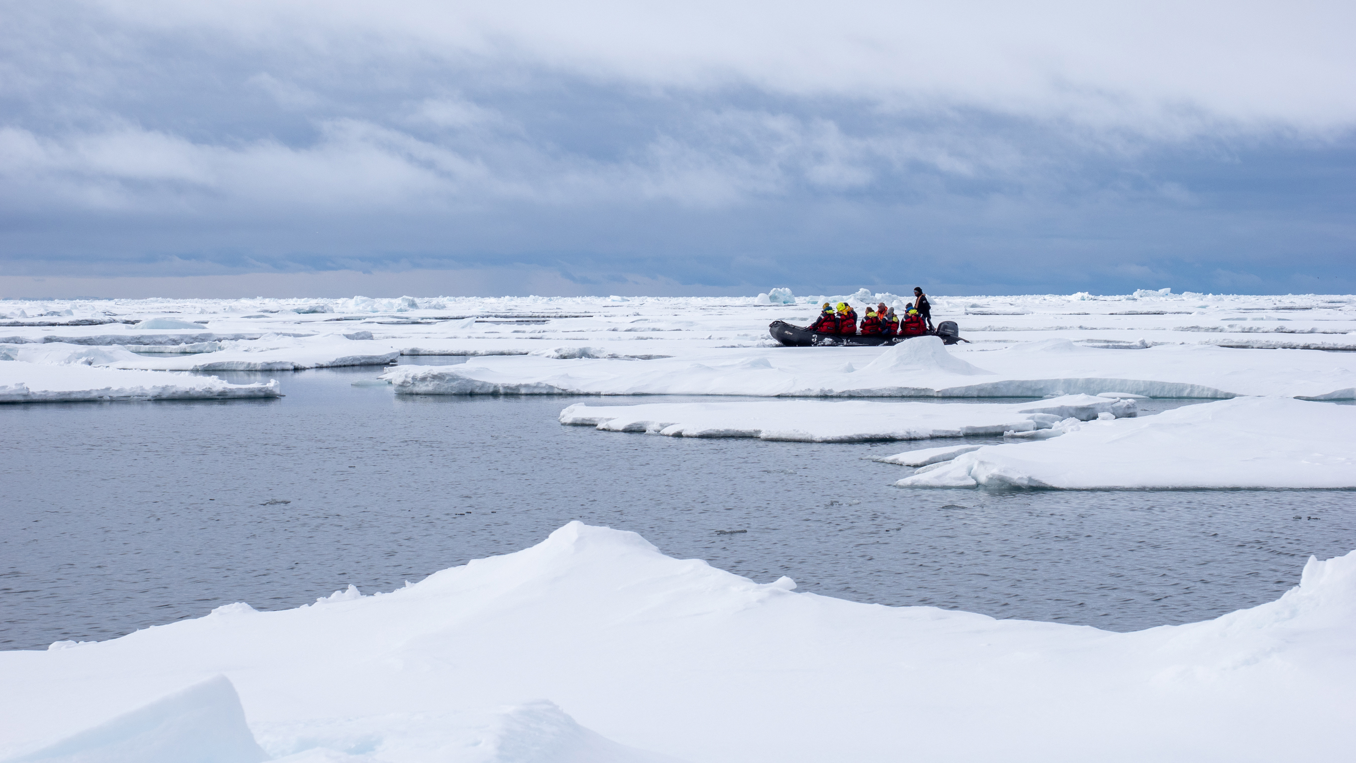 När spänningen lagt sig och frukosten var avklarad var det dags att göra sig i ordning för morgonens Zodiac-kryssning. Vi kunde inte ha önskat oss bättre förhållanden – kristallklar himmel, vindstilla och bländande ljus som reflekterades i havsisarna. Jag körde en av Zodiac-båtarna och manövrerade försiktigt mellan isflaken, samtidigt som jag hela tiden spanade efter vilda djur.