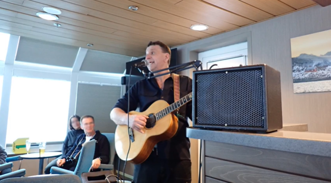 Eftermiddagen tillbaka på båten erhöll tre föreläsningar av tre av våra guider, om livet på Svalbard, ekologiska anpassningar och miljöförändringar i Arktis samt valrossar. Till middag serverades bland annat en fantastisk god röding. Mitt i middagen blev vi avbrutna av en isbjörnshona som kom gåendes längs stranden. I lugn och ro hann alla gäster bevittna detta mäktiga djur när hon lunkade längs stranden. Detta satte tonen för en perfekt kväll vilken avslutades med ett framträdande av Anders Lundin på gitarr.